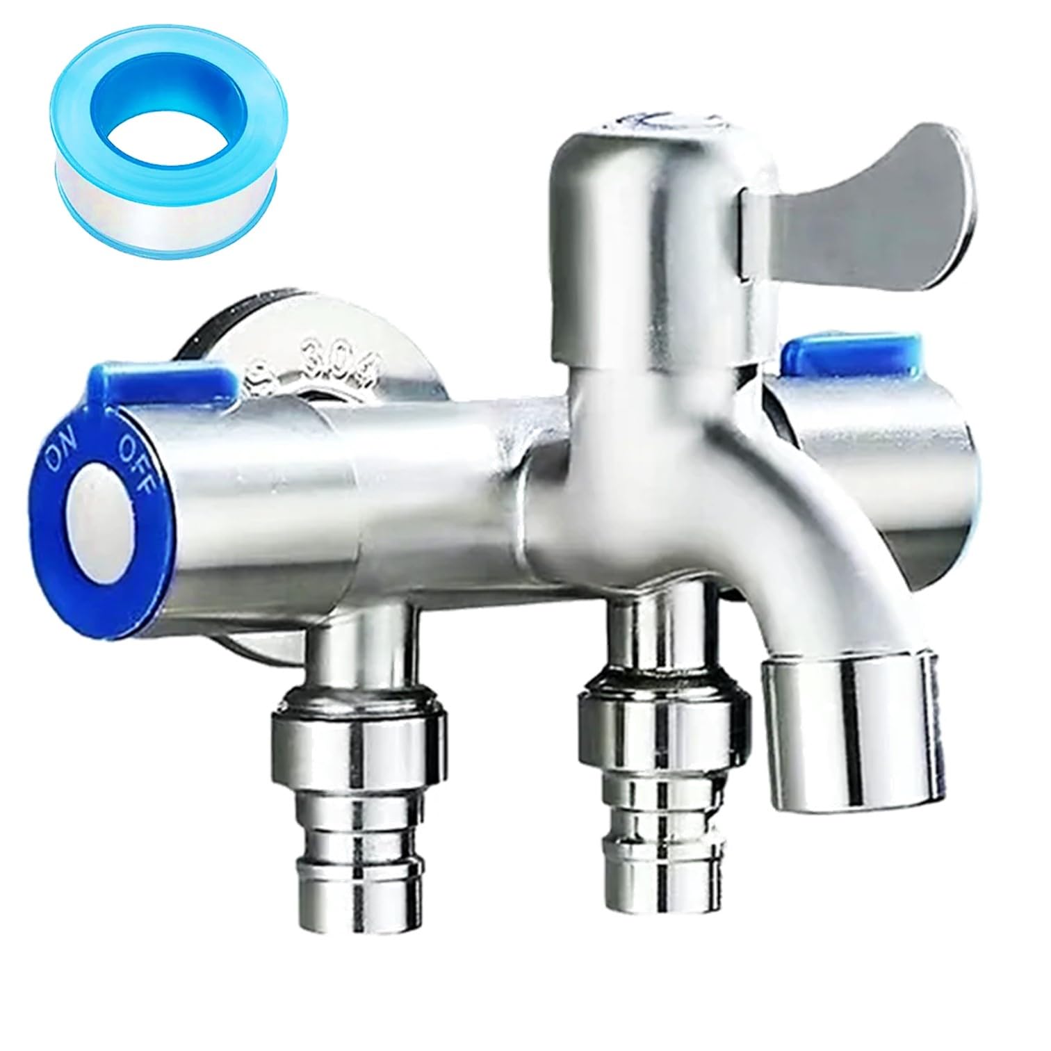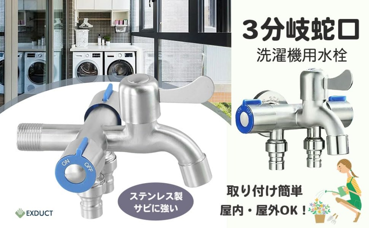 3分岐蛇口 洗濯機用水栓 3分岐止水栓 ステンレス製 三股蛇口 標準G1/2 洗濯 お風呂 洗面所 浴室 ベランダ ガーデン 3口 蛇口
