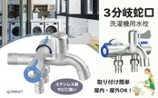 水道を3口に分けるステンレス製の3分岐蛇口です。