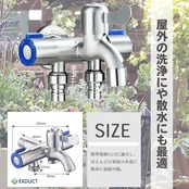 屋内、屋外の水道について、様々な用途に対応できます。2台の洗濯機を同時に使用しながら通常の水道も使えるので便利です。