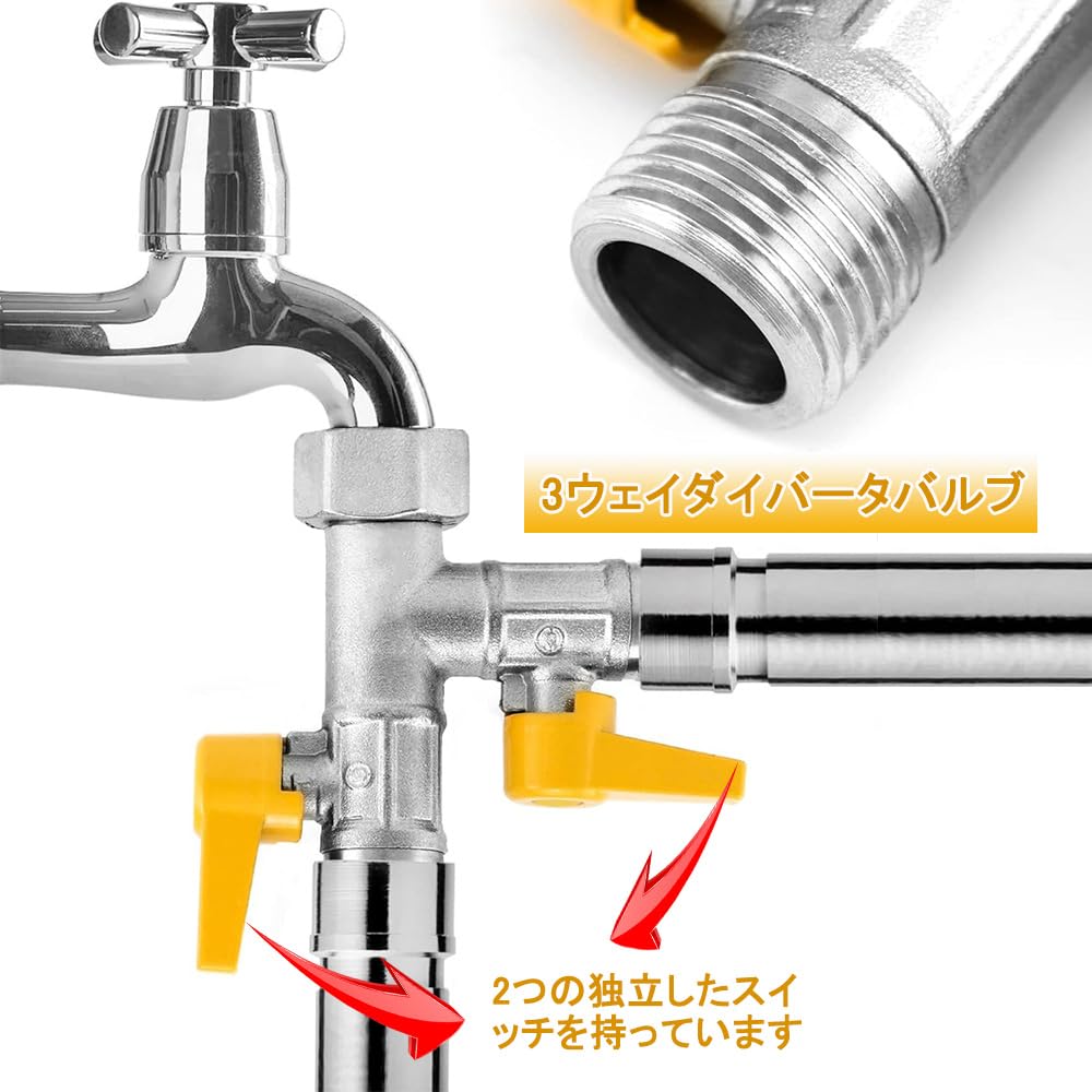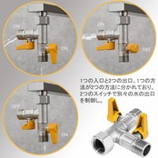 【ユニークな3方向分水バルブ設計】この製品は独立した2つのスイッチを備えており、1つの入り口を2つの出口に分岐させることができます。これにより、異なる水流を独立してコントロールすることが可能で、水流が干渉しないので、より快適なバスルーム体験を提供します。