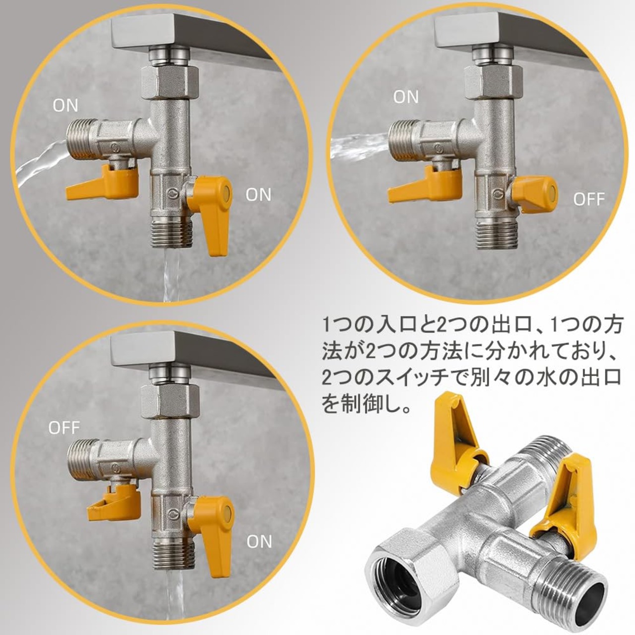 T型アダプタ G1/2 三方向 ウェイダイバーターバルブ 国際標準四分口径 交換Tピース ダイ ダイバータバルブ銅 ダイバータバルブ水分配器 キッチン 浴室トイレ バスルーム 多機能