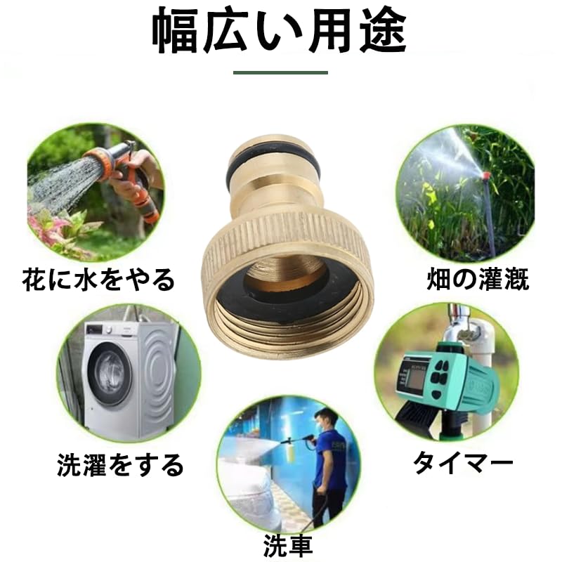 高耐久真鍮素材 | 蛇口とホースの確実な接続 | 水漏れ防止ゴムワッシャー装備 | 庭や洗車に最適 ホース ジョイント 水道ホース ジョイント