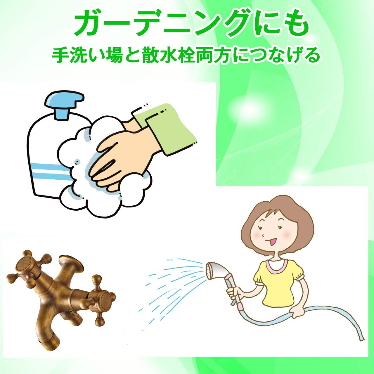 ガーデンに設置すれば散水栓と水道の両方を使える:2口タイプの蛇口は庭の水道栓に使うのにぴったりです。メインは洗い場で水を使うのに使用し、もうひとつの蛇口は散水栓などに繋いでおけば、水播きの度にホースを繋ぐ必要がありません。