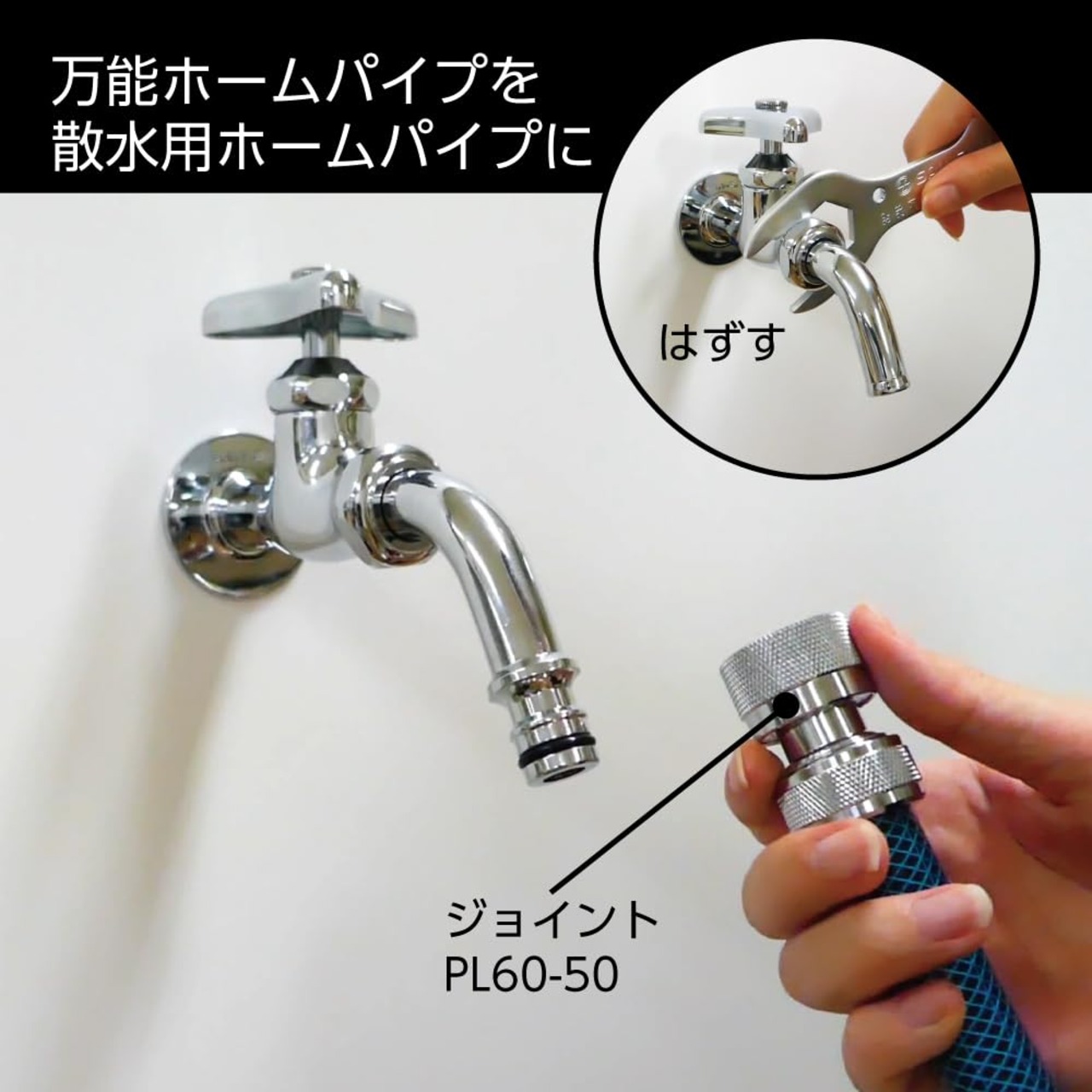 ホースをワンタッチで接続するにはジョインターが必要です。接続はSANEI製PL60-50,PL70-50をご使用下さい。