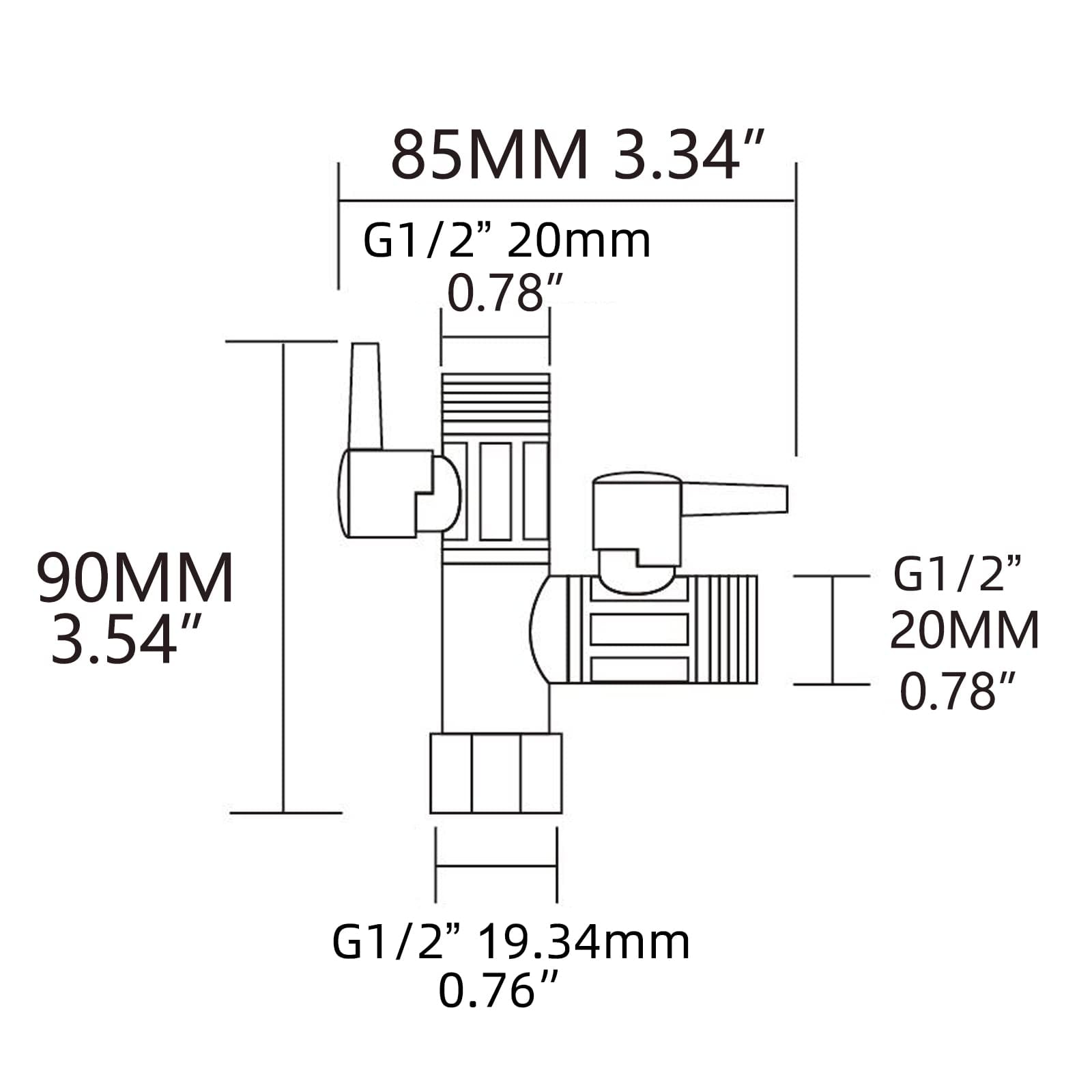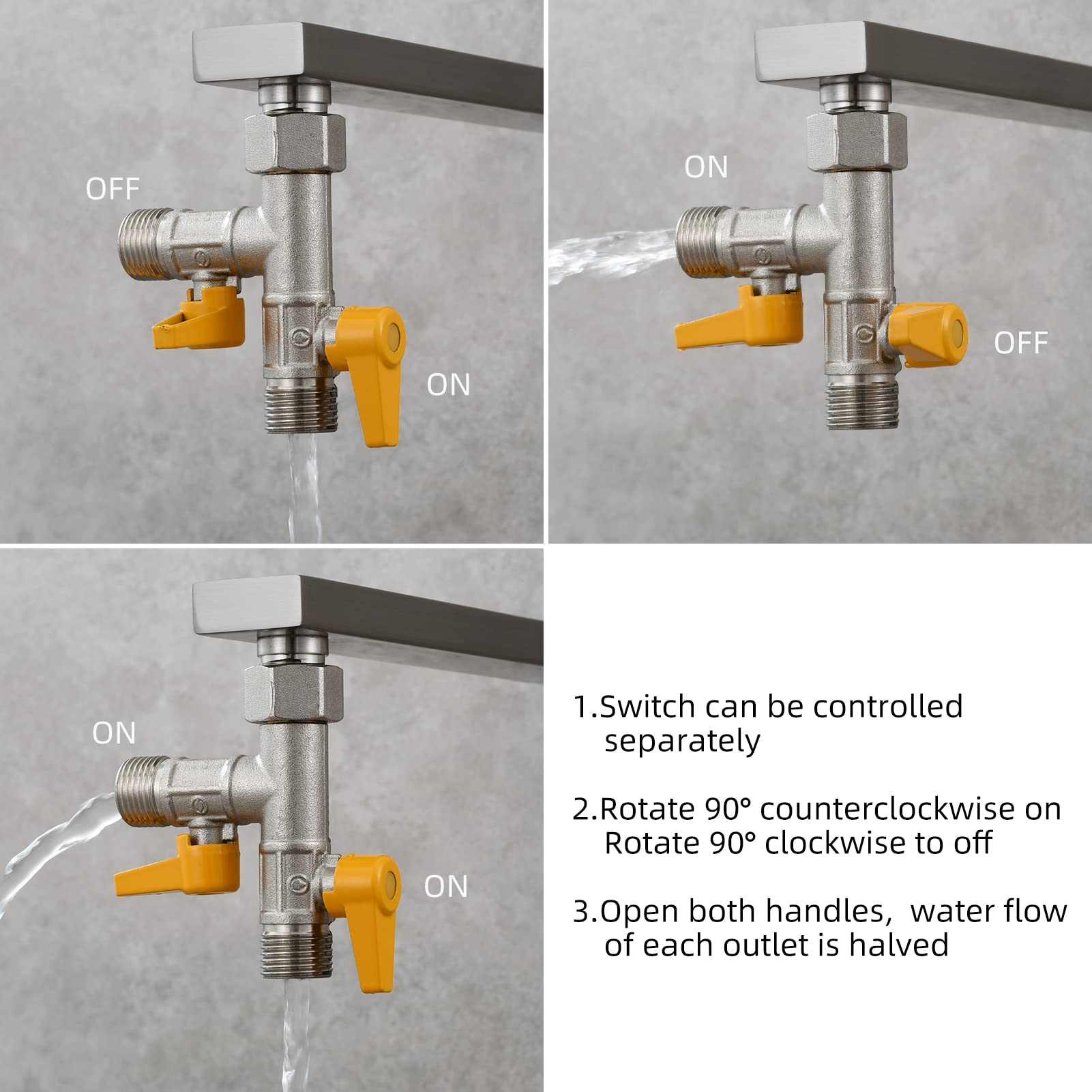 Ciencia G 1/2 三方向 T型アダプタ シャワーホース 切換バルブ ダイバータバルブ銅 国際標準四分口径, DSF009