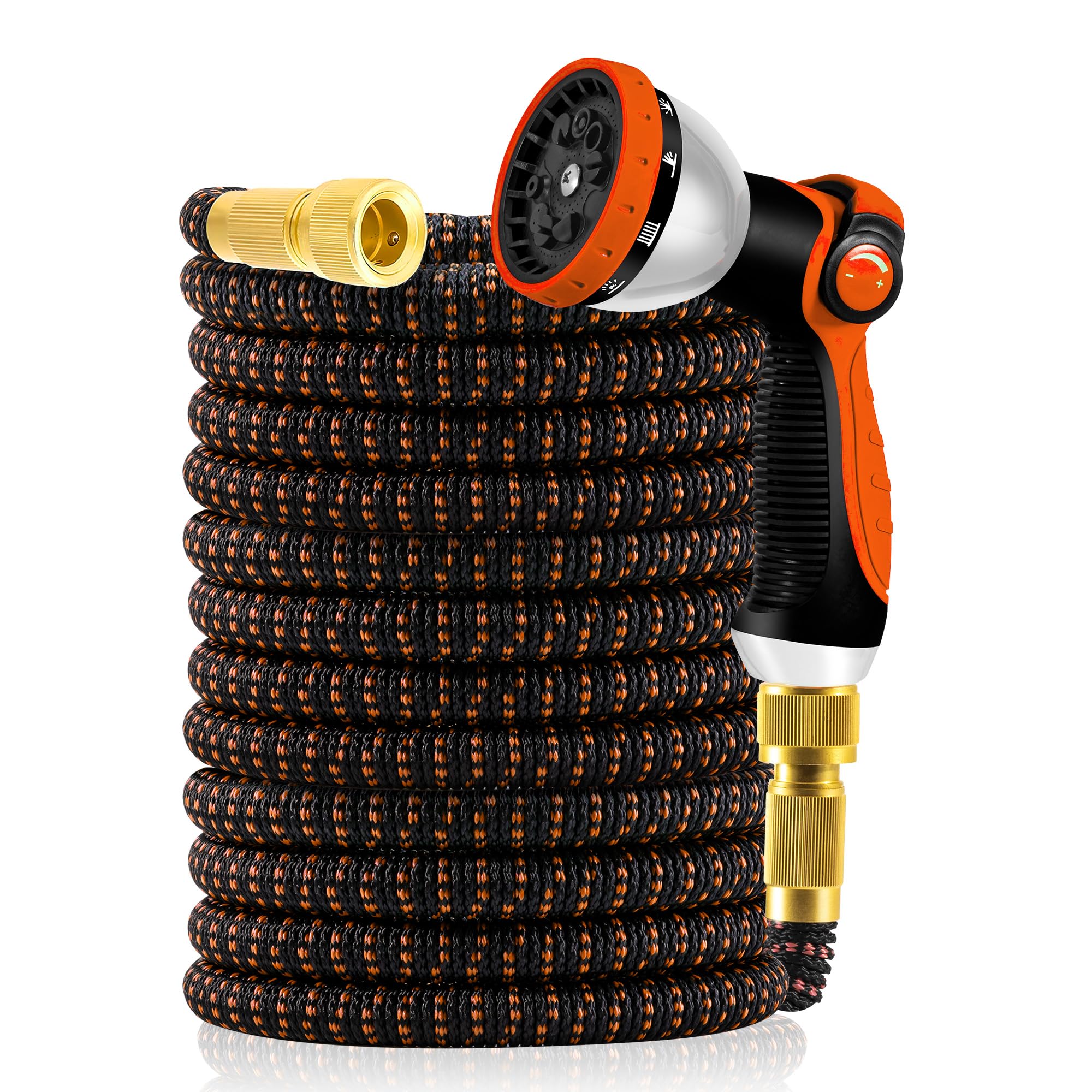 【数量限】Yofidra 散水ホース 3倍伸びる 伸縮ホース 10in1散水ノズル 2mmラテックス内層 超強度外層材料 超軽量 耐久 耐摩擦性 多くの蛇口対応可能 収納しやすい 絡まりにくい 水やり 洗車 庭 ベランダ 園芸 花壇 掃除用 ガーデニング 庭 洗車 多機能蛇口継手付き (オレンジ+ブラック 5-15m) | GIGATERA