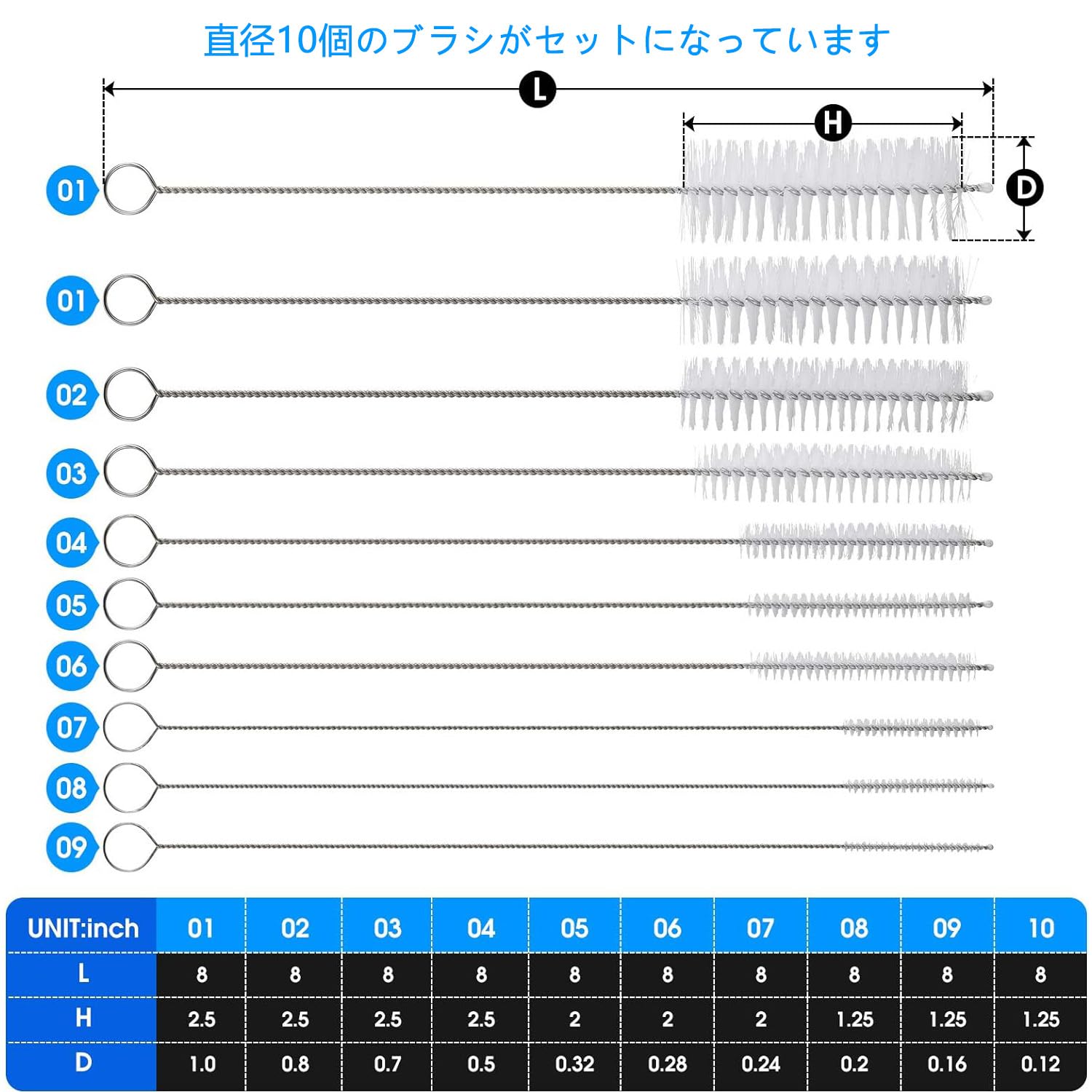 ストローブラシは持ち手部分が長いことで、長いストローや手が届きにくい部分まで綺麗に洗う事ができるロングチューブブラシとなっています。 また、洗浄ブラシはいろんなのストローを綺麗に洗うことが出来ます。 哺乳瓶やノズル、食器や試験管、キーボードなどの部品の隙間を洗うこともできます。ブラシはナイロンの糸で作って、 ストロー/ボトルの壁に接触して良好で、 非常に清潔に適しています。 ステンレス製で、高品質耐久性が優れます、 使用後は清掃して乾かしてください。 およびブラシの各端は防護帽デザインもあり、傷つけるのは避けて、けがも防止することができます。