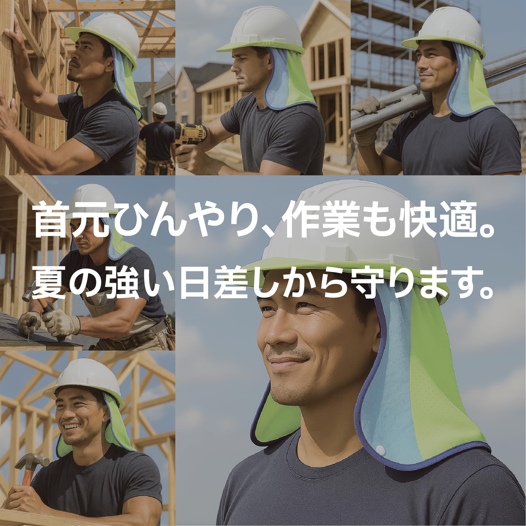 【UVカット素材】直射日光から顔・首まわりを守り、熱中症対策に効果的。 作業に最適。