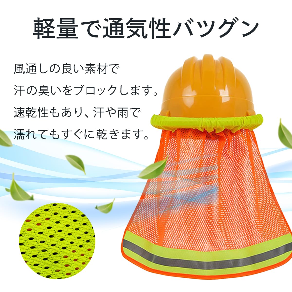 メッシュで快適な作業環境 メッシュ素材を採用しているので、日差しを遮りつつも風通しの良い素材により空気が循環する設計です。炎天下でも快適な作業環境を提供し、熱中症を防ぎます。紫外線対策が重要な建設現場や農作業に最適で、顔や首を直射日光から保護します。軽量でありながら耐久性に優れた素材で、屋外作業でも長持ちします。どのヘルメットにも簡単に装着できるため、手軽に暑さ対策を始めたい方におすすめです。