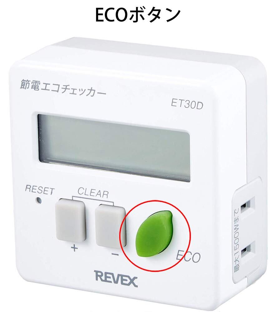 使い方 デジタルエコチェッカーをコンセントに差し込み、電機器具を使用します。 ECOボタンを押すたびに、液晶画面に6種類の節電情報を表示します。