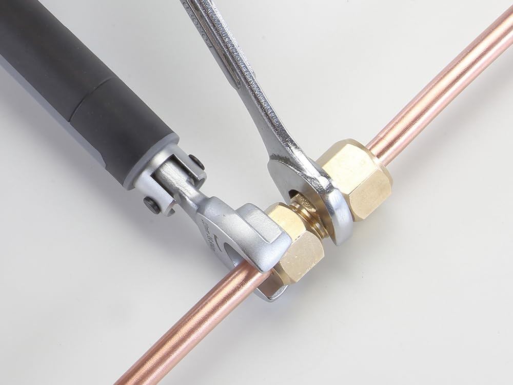 ●2丁掛けでも使いやすい:2丁掛けする際にも、一定の距離を保ち両手の接触を回避できます。 ●正確な締め付けをサポート:従来にはない、独自のヘッド形状が正確な 締め付けをサポートします。 さらに、摩耗の少ない鍛造品です。 ●握りやすいグリップ:力点がわかりやすいグリップラインなどの デザインや握りやすさに関わる材質は試 作を重ねてたどり着いた自信作です。