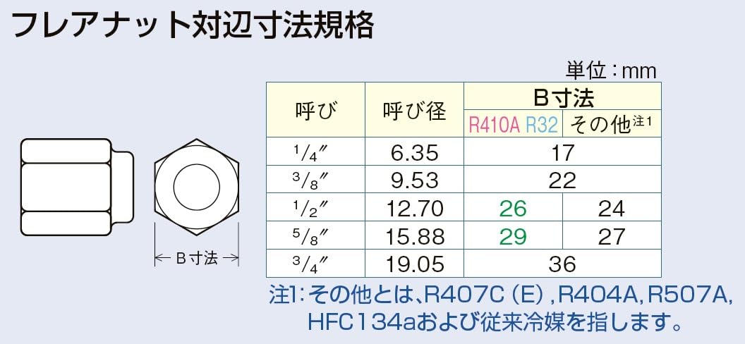 フレアナット(冷媒サイズ):1/4”・3/8”