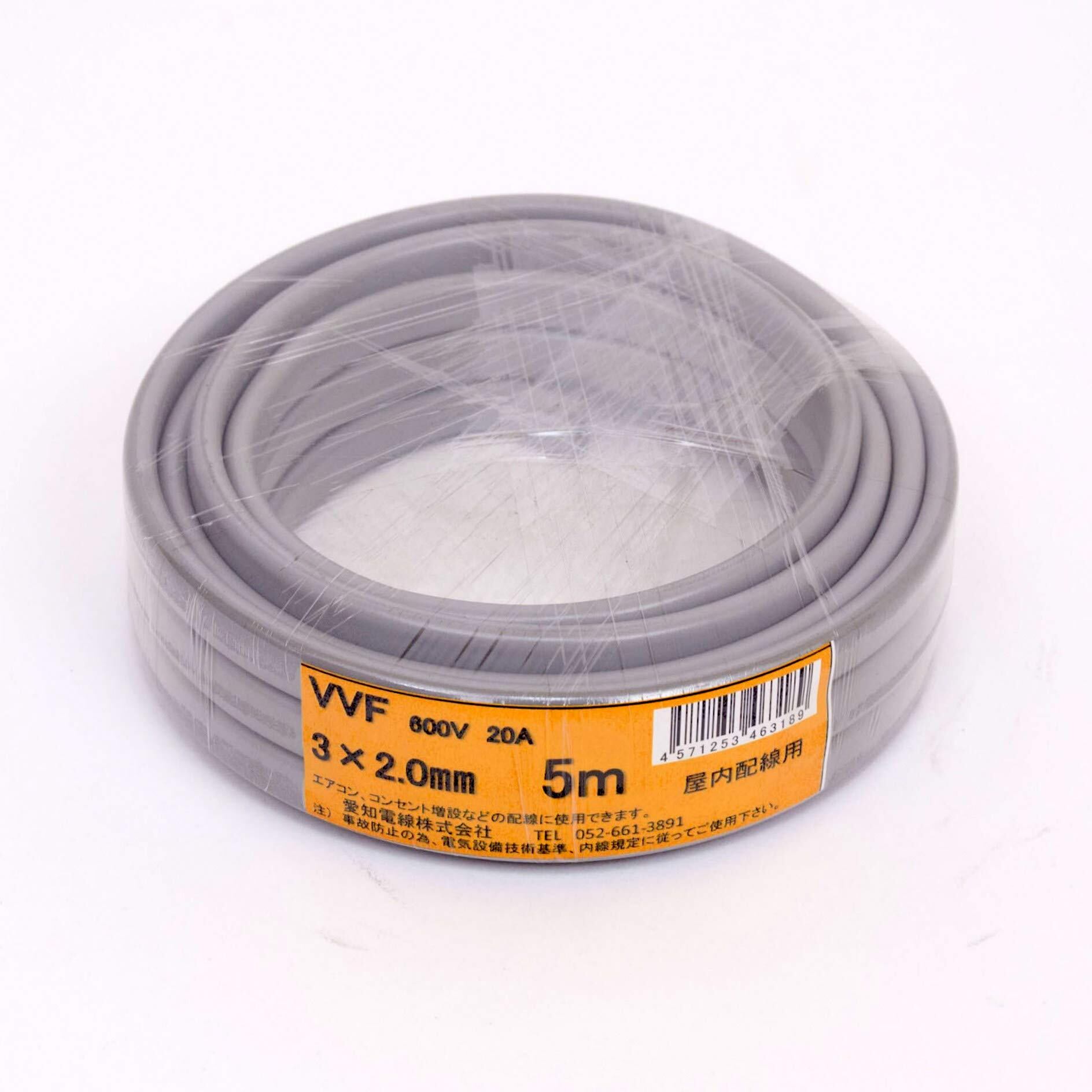 愛知電線 VVF ケーブル3芯 2.0mm 5m 灰色 VVF3×2.0M05