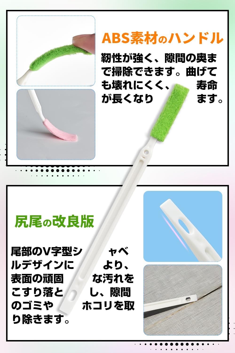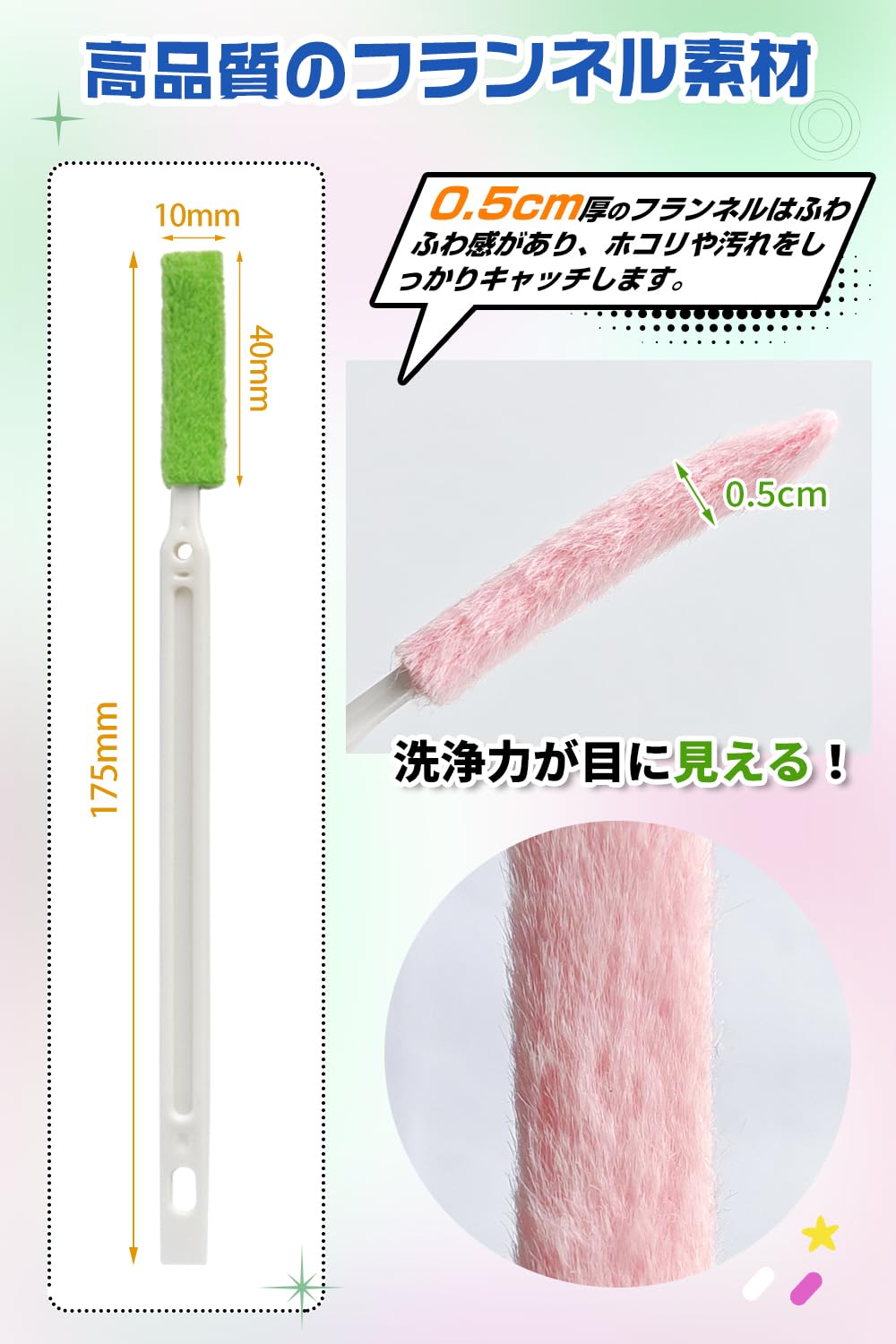 ?【商品仕様】内容量:20本入りグリーン+10本入ピンク,合計:30本入; サイズ:全長:17cm ブラシ部分:4cm×1cm×0.3cm。隙間ブラシは手が届かな狭い所に溜まった汚れ・カビ・埃の掃除に大活躍!手軽な隙間掃除グッズ!