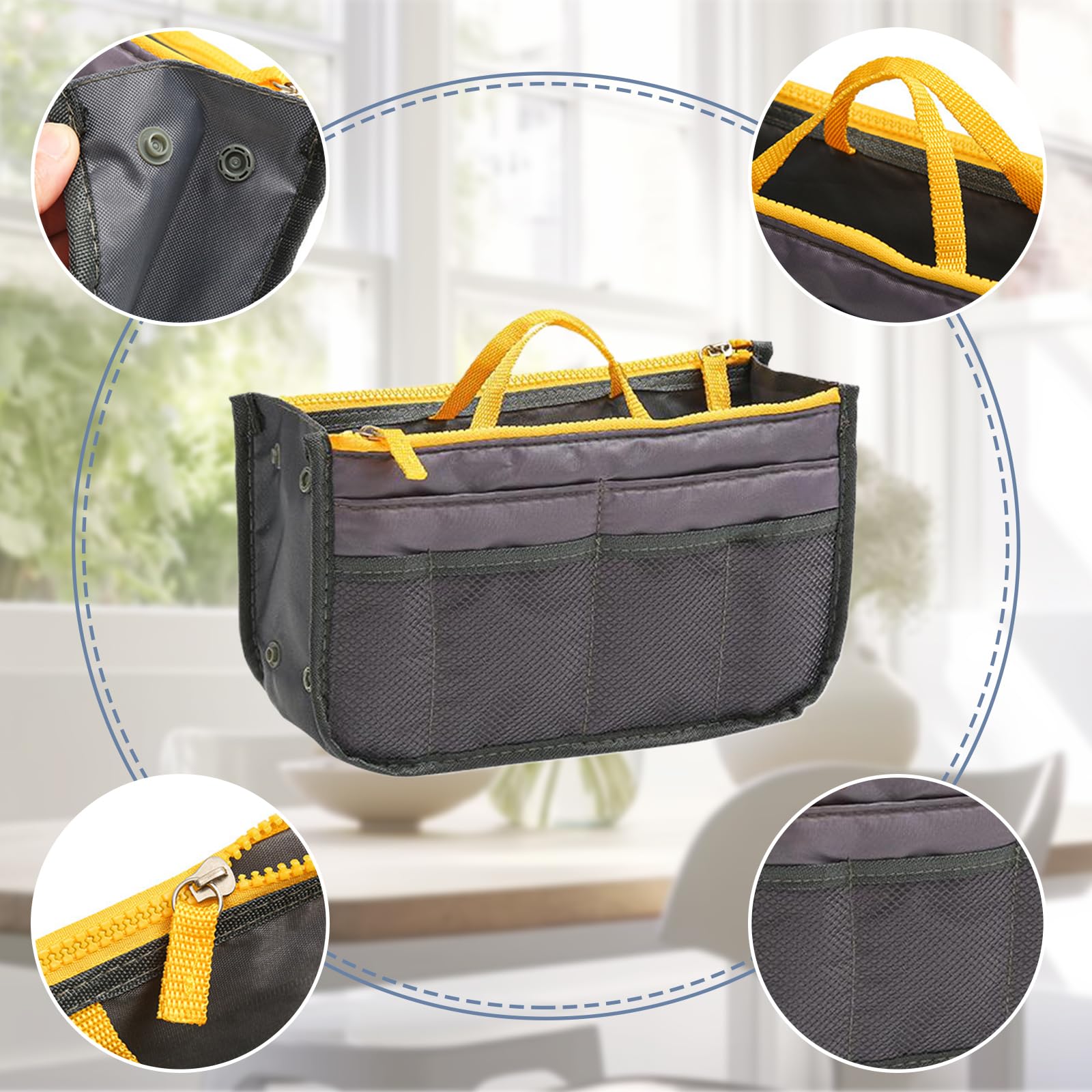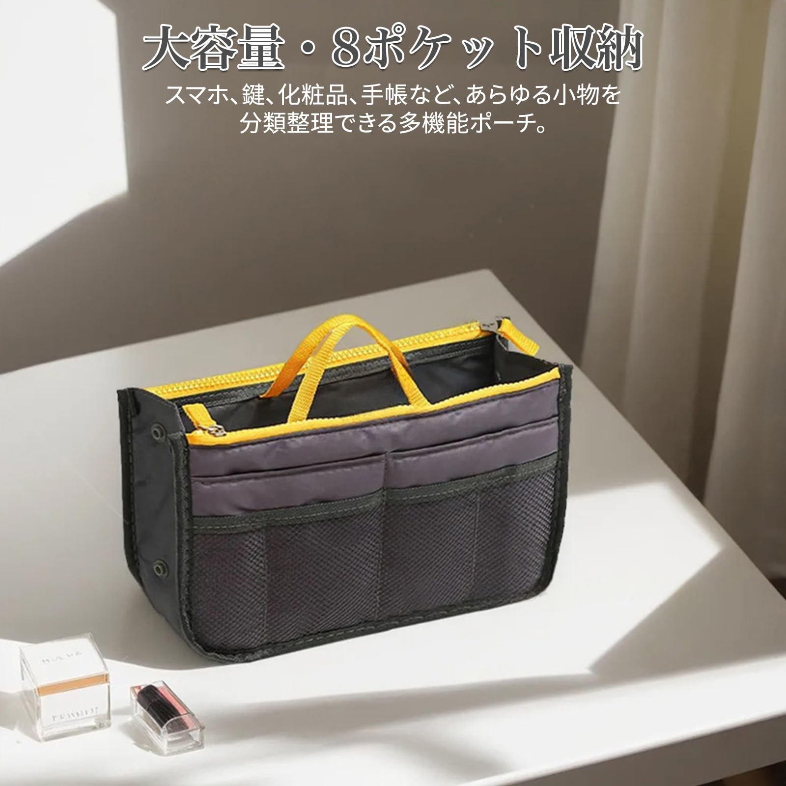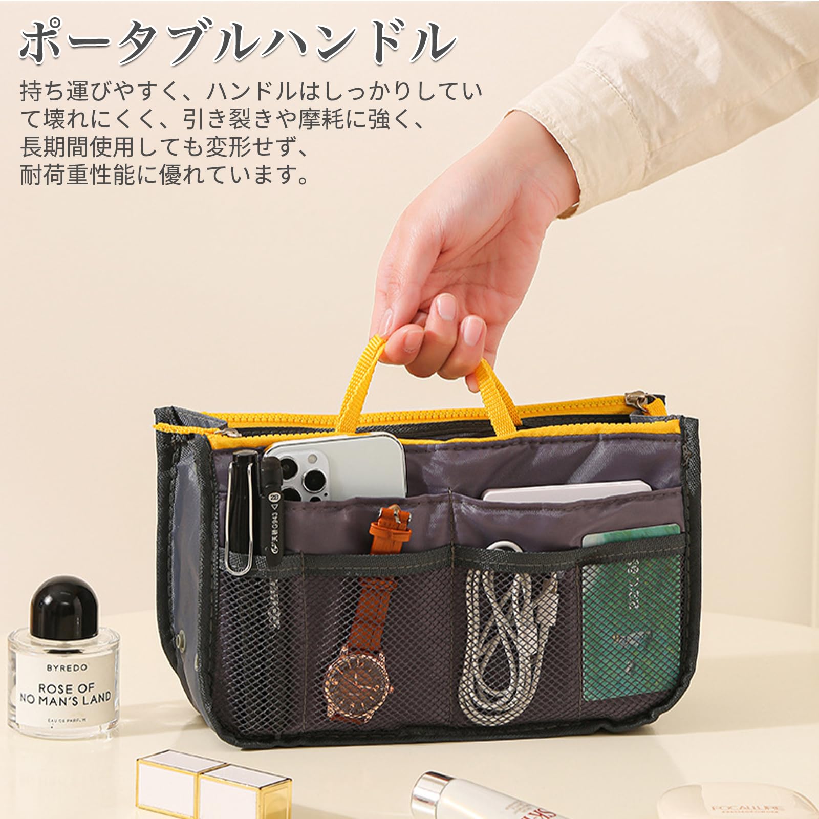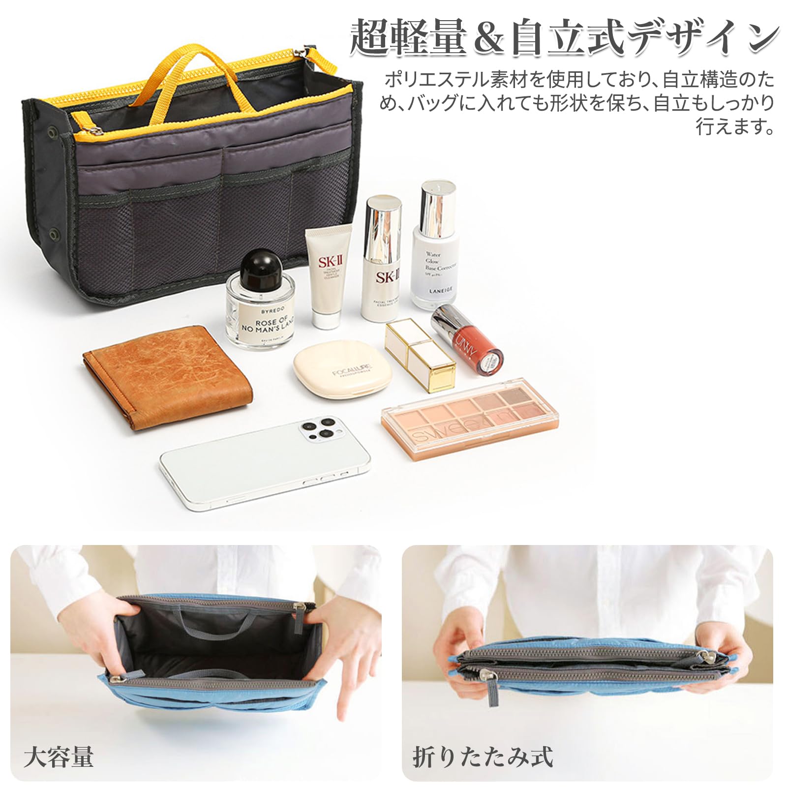 バッグインバッグ インナーバッグ マルチバッグ 自立式 軽量 大容量 収納ケース 多機能 トラベルポーチ 化粧品収納 通勤 旅行 キャンプ 引越し用 (ブラック)