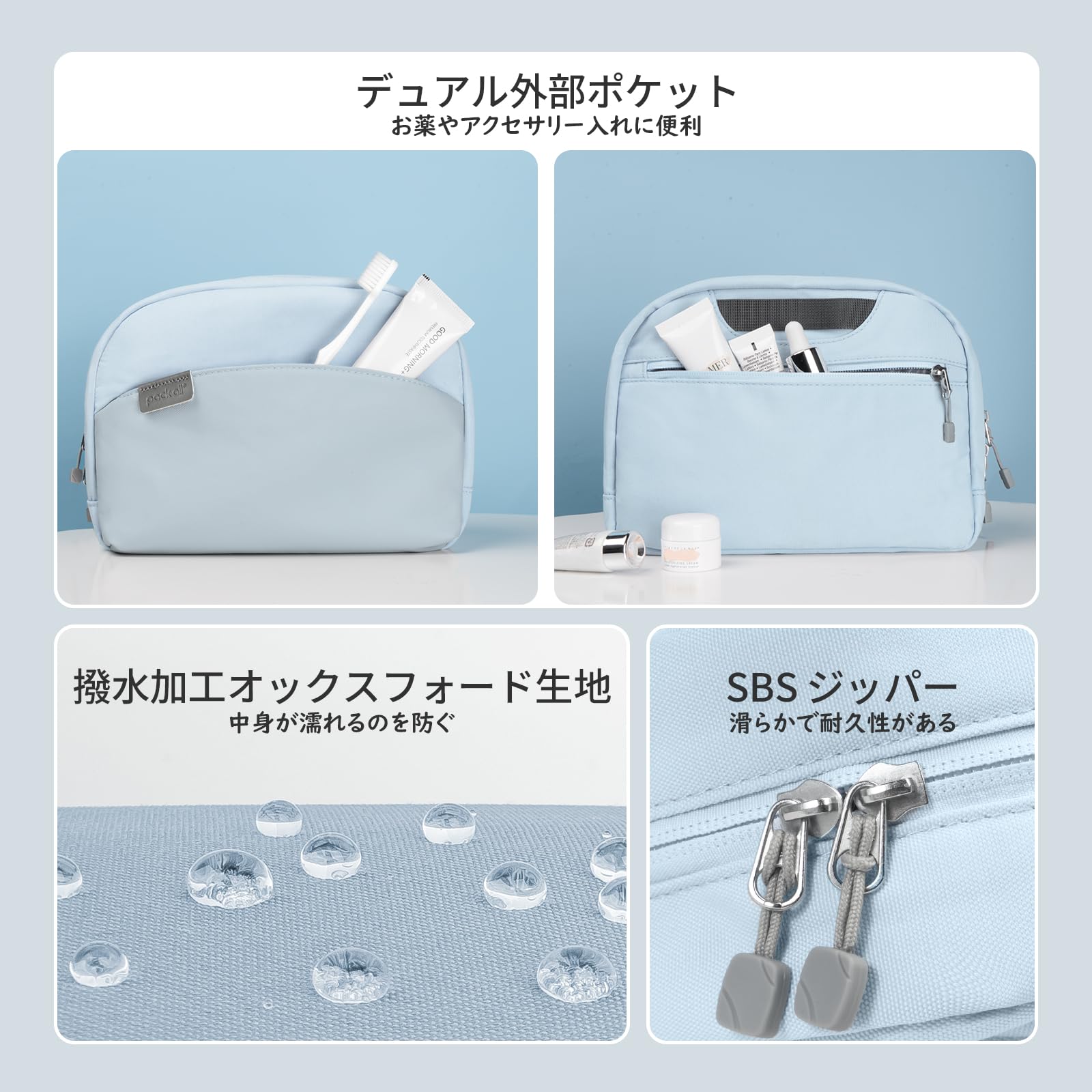 pack all 化粧ポーチ トイレタリーバッグ コスメポーチ トラベルポーチ 小物入れ 化粧品 洗面用具 おしゃれ 大容量 軽量 撥水加工 自立 持ち運び メイクブラシ収納可能 ギフト 出張 旅行用 男女兼用(ソーダブルー)