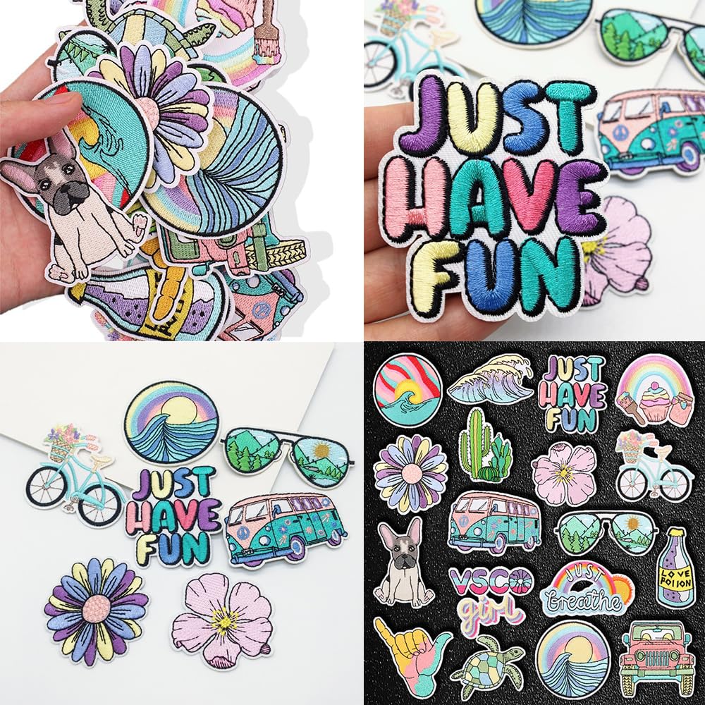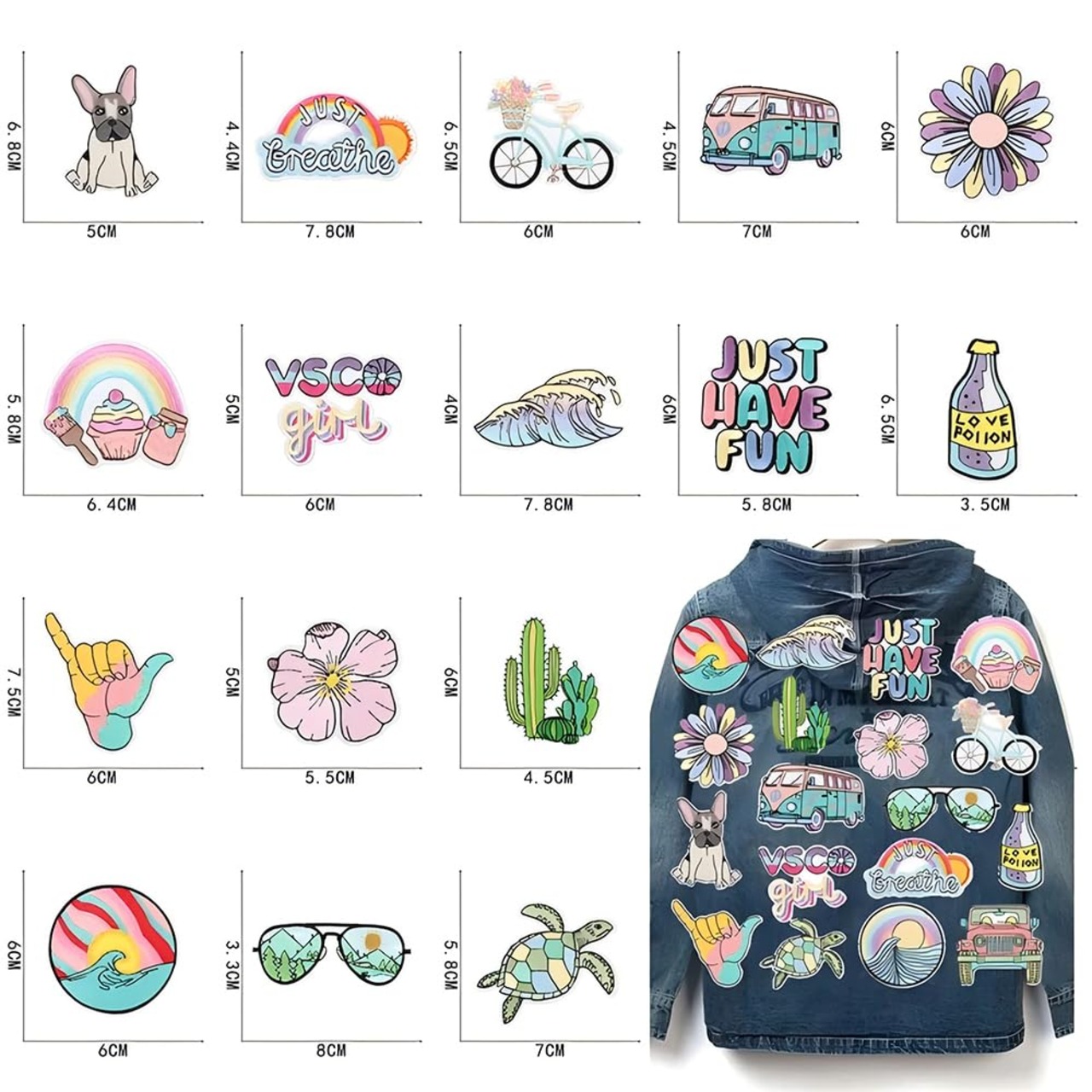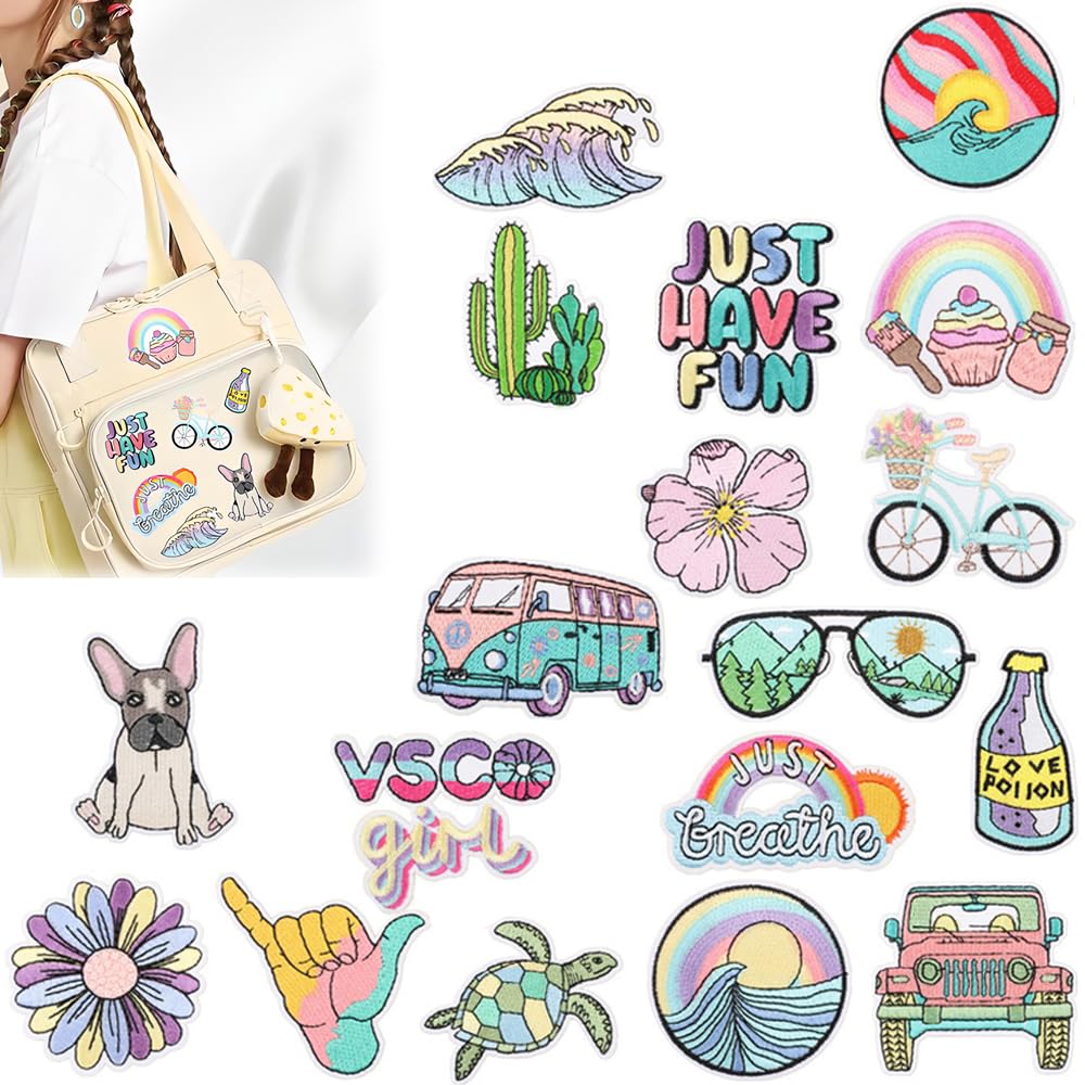 【セール】ワッペン アイロンワッペン アメカジ ワッペン 刺繍パッチ 波、虹、車、ウミガメ、18個セット 貼り付けまたは縫い付け 大人、子供のためのパーソナル刺繍 DIY装飾 アクセサリー 衣類 飾り | GIGATERA
