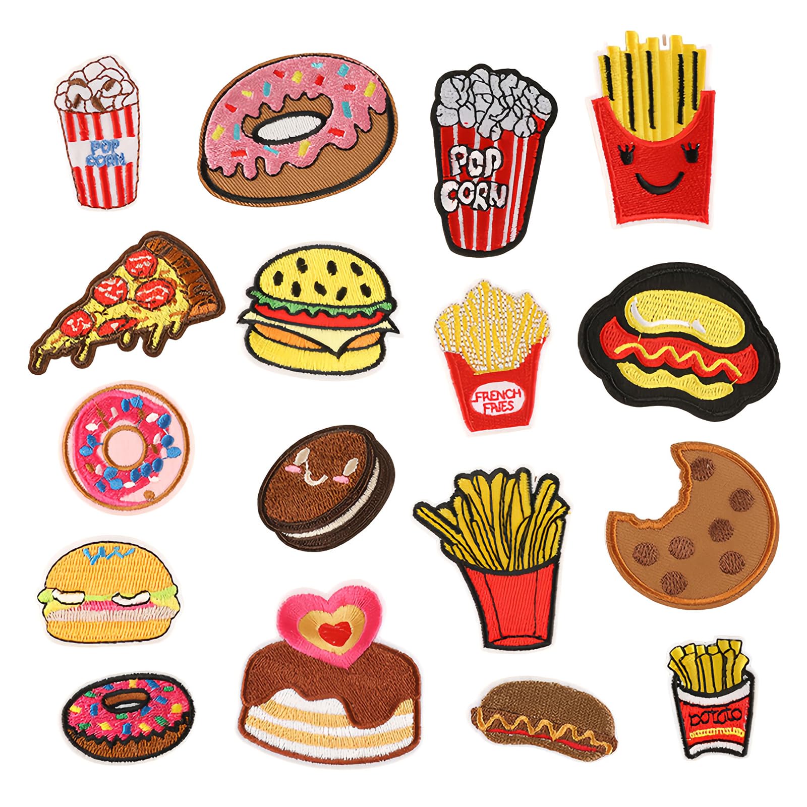 aninako ワッペン 人気セット アイロン貼り付け 縫い付け 可愛いアップリケ 刺繍ワッペン 手芸用 男の子 女の子 複数の刺繍オプション かわいい おしゃれ 入園 入学 幼稚園 保育園 小学校 大人用 (フライドポテト・バーガー(17個セット))
