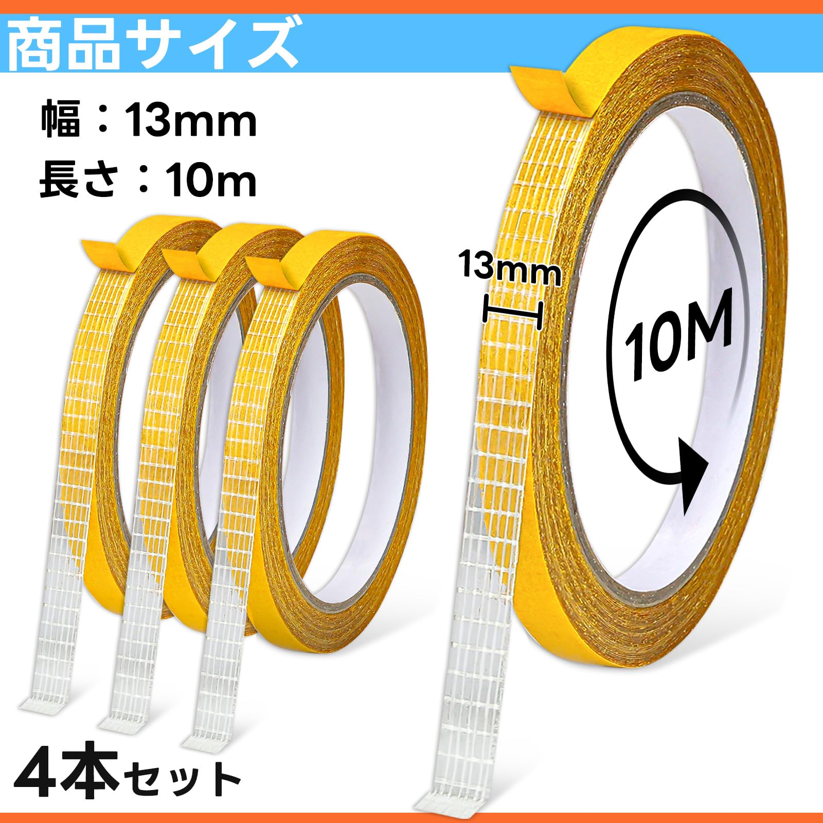 【在庫処分】布用両面テープ【??やアイロン不要!織物に大活躍!大容量4本セット】 薄型 超強力 裾上げテープ カーペット用両面テープ 裾直し パンチラ防止 織物用補修テープ 肌ピタ粘着テープ 衣類用 耐久性優れる ズボン カーテン 織物 スカート 着崩れ防止 ズレ防止DIY 説明書 動画解説 マチ針不要 洗濯OK 手芸用品 布 トーギー サイズ:13mm×10m 4本セット | GIGATERA
