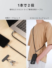 【幅広い互換性】 ストラップはスマートフォンやタブレット、カメラなどの携帯機器に最適です。スマホの肩掛けだけでなく、IDホルダー、懐中電灯、名札、社員証、USBメモリー、マスコットホルダー、キーなどの日常の小物の持ち運びにも便利で、多用途にわたる利用が可能です。USB CケーブルはiPhone16/15シリーズ、iPad、MacBook、Samsung、Sony等Type-c機種対応できる充電ケーブルです。
