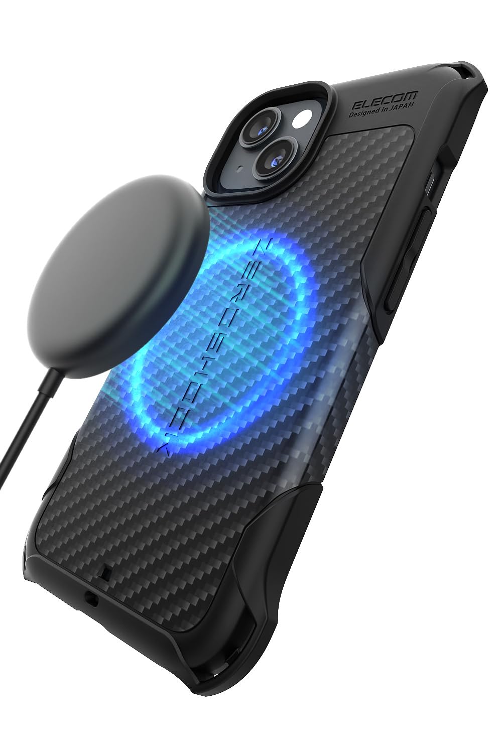 【セール】エレコム iPhone 14 / 13 ケース Magsafe対応iPhone専用 マグネット搭載 ワイヤレス充電 耐衝撃 ZEROSHOCK 四つ角ダンパー ハニカム構造 全面保護 米軍MIL規格準拠 ストラップホール付き ブラック PMWA22AZEROG2BK | GIGATERA