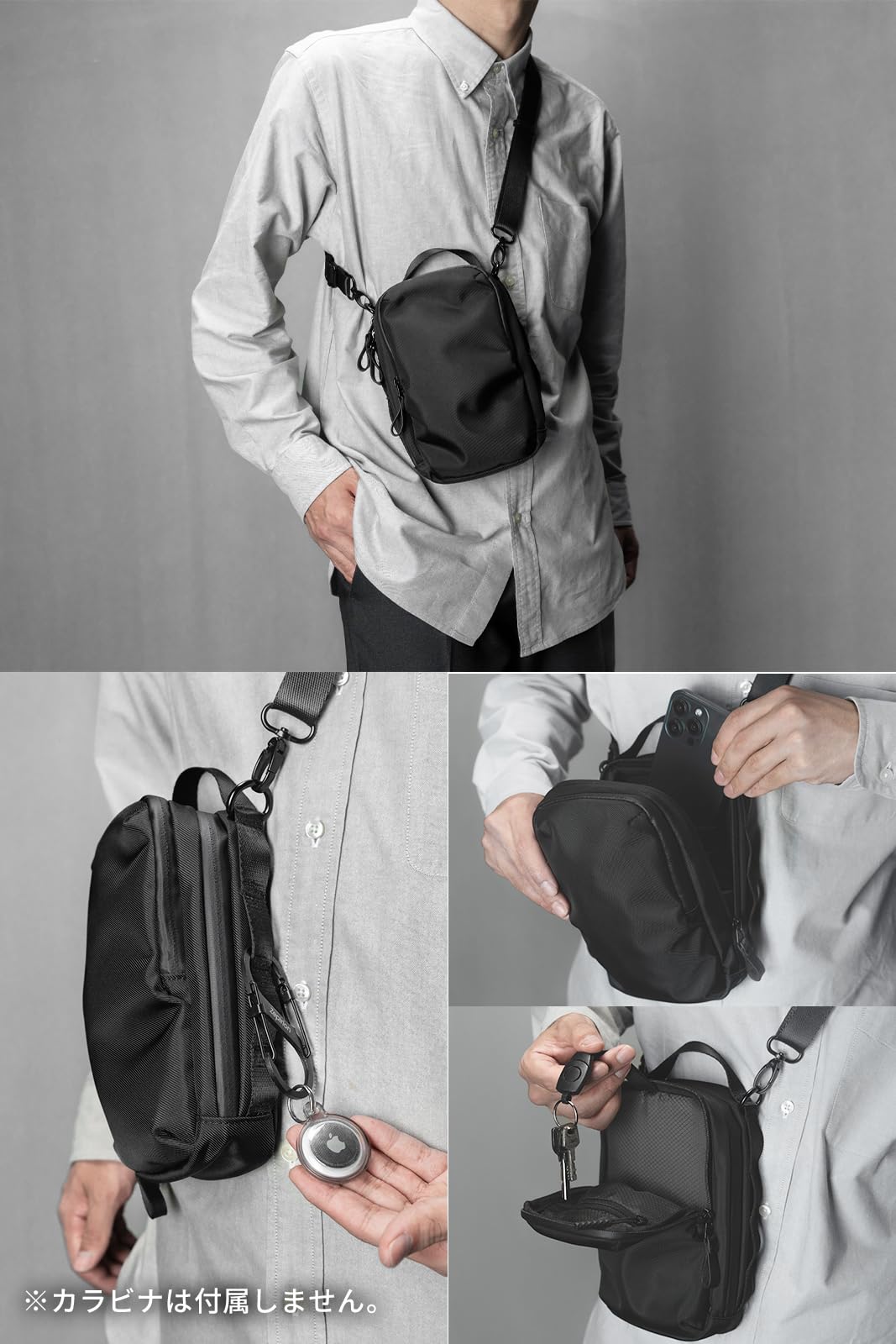 ?【サッと出かけられる】「少ない荷物でちょっとそこまで」の場面で大活躍。サッと使えて、すぐに収納できます。 ?【コンパクトで多収納】 大きく開いて視認しやすいメイン収納には3つのポケットとメッシュポケットを設計。さらに、背面ポケット、キーチェーンが内蔵フロントポケット。毎日持ち歩く、小物整理にも役立ちます。
