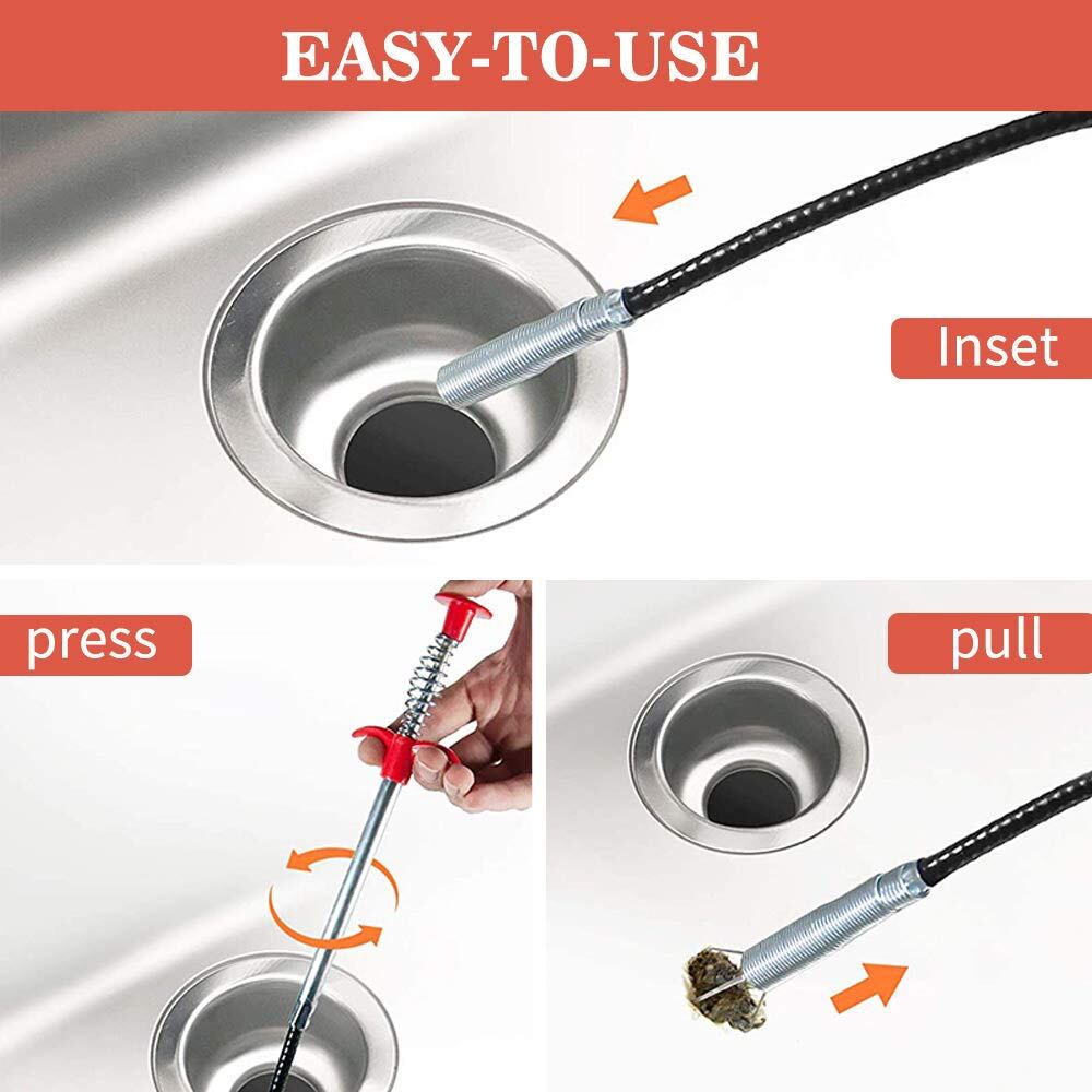 【幅広い用途】シンクドレン目詰まり除去ツールは、遅いドレンや詰まったドレンを解決するのに最適な配管ツールです。 キッチン、シンク、バスルーム、トイレ、浴槽、シャワー排水管、下水道の掃除などに適しています。