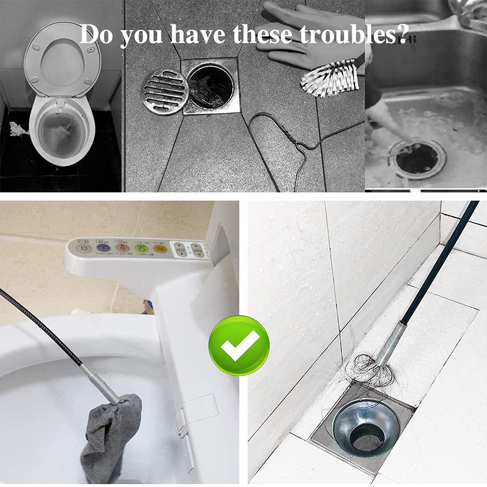 【フレキシブル&ベンダブル】靭性に優れ、自由に曲げることができ、下水管に簡単に挿入して破片を取り除き、排水管のブロックを解除できます。