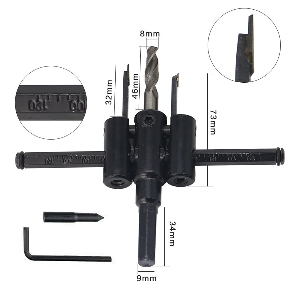 自由錐 自在錐 超硬合金 充電ドリル用 金属ウッドサークル穴のこぎりドリルビットカッター 調節可能 DIY工具 新建材 アクリル板 木工用 電気ドリル ブラック(黒) (30~120mm)
