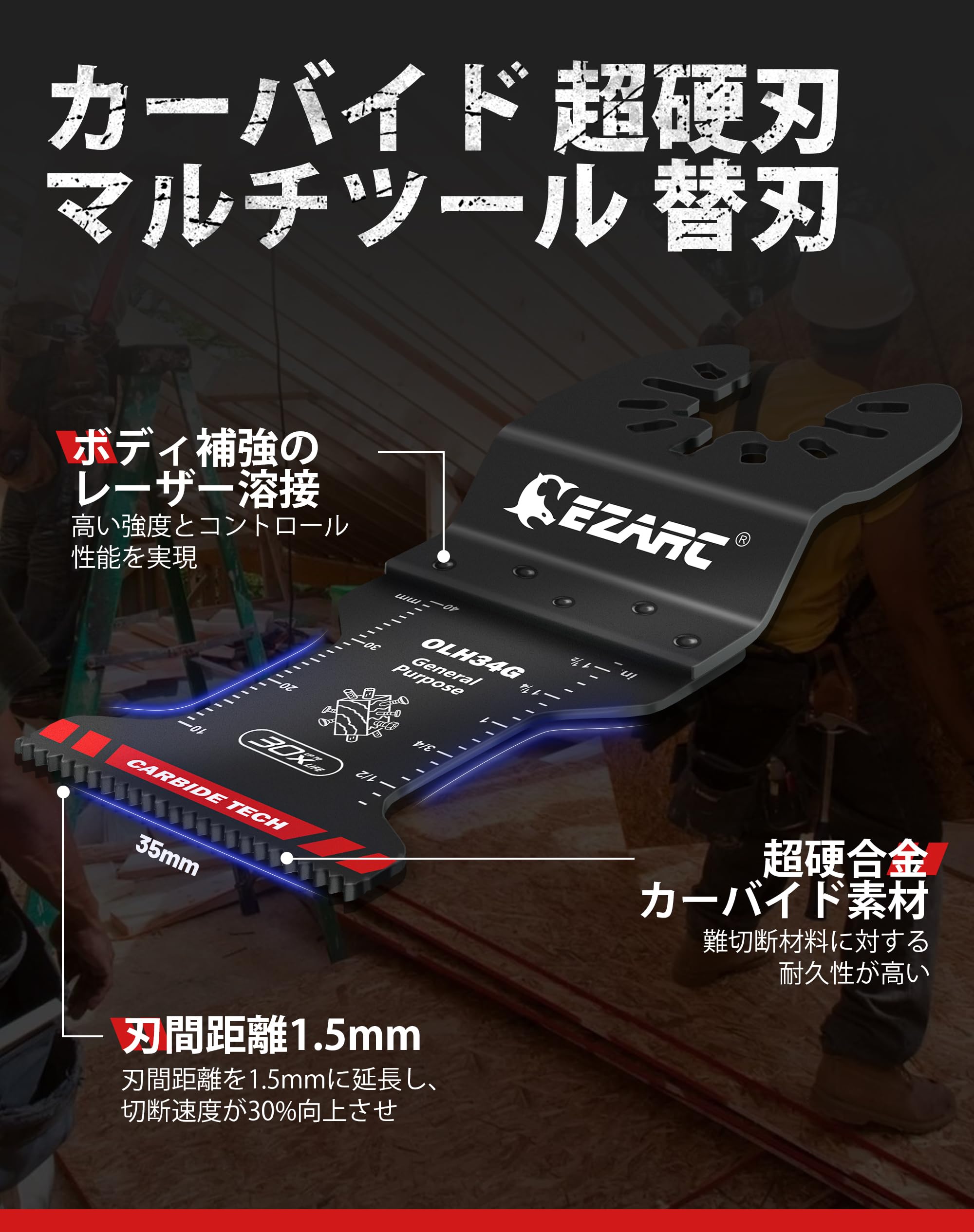 EZARC(イザーク) マルチツール 替刃 超硬 カーバイド 金属 木材切断対応 超硬ブレード 長寿命 刃厚1.2mm 3本入り