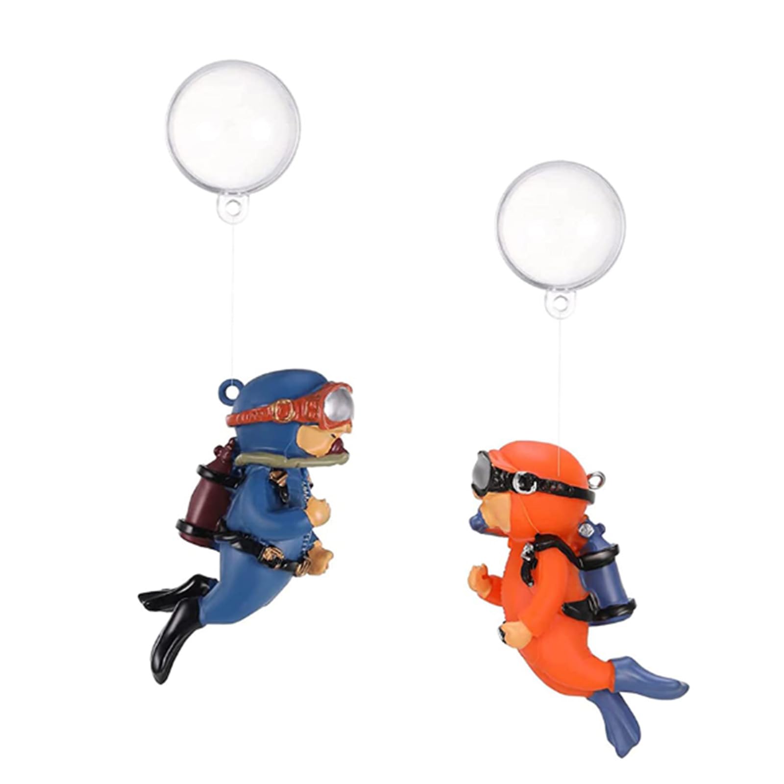 アクアリウム 水槽 装飾 2個入り 樹脂 安全性 耐久性 ダイバーアクアリウムペンダント水槽水景オーナメント装飾浮遊小型オーナメント (ブルー+オレンジ)