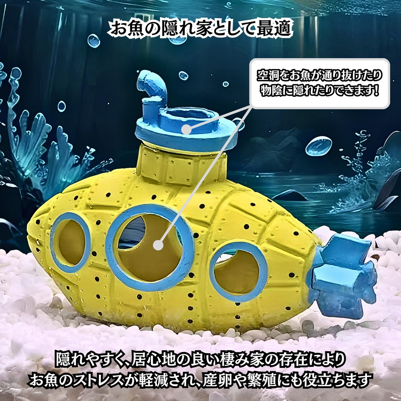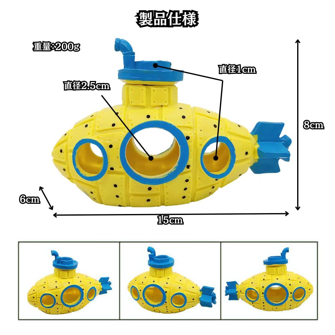Charmoon 水槽 オブジェ 潜水艦 船 サブマリン 隠れ家 シェルター アクアリウム オーナメント おしゃれ 置物 (イエロー)