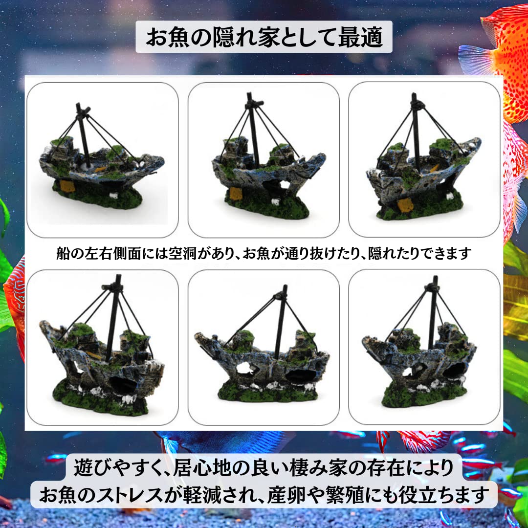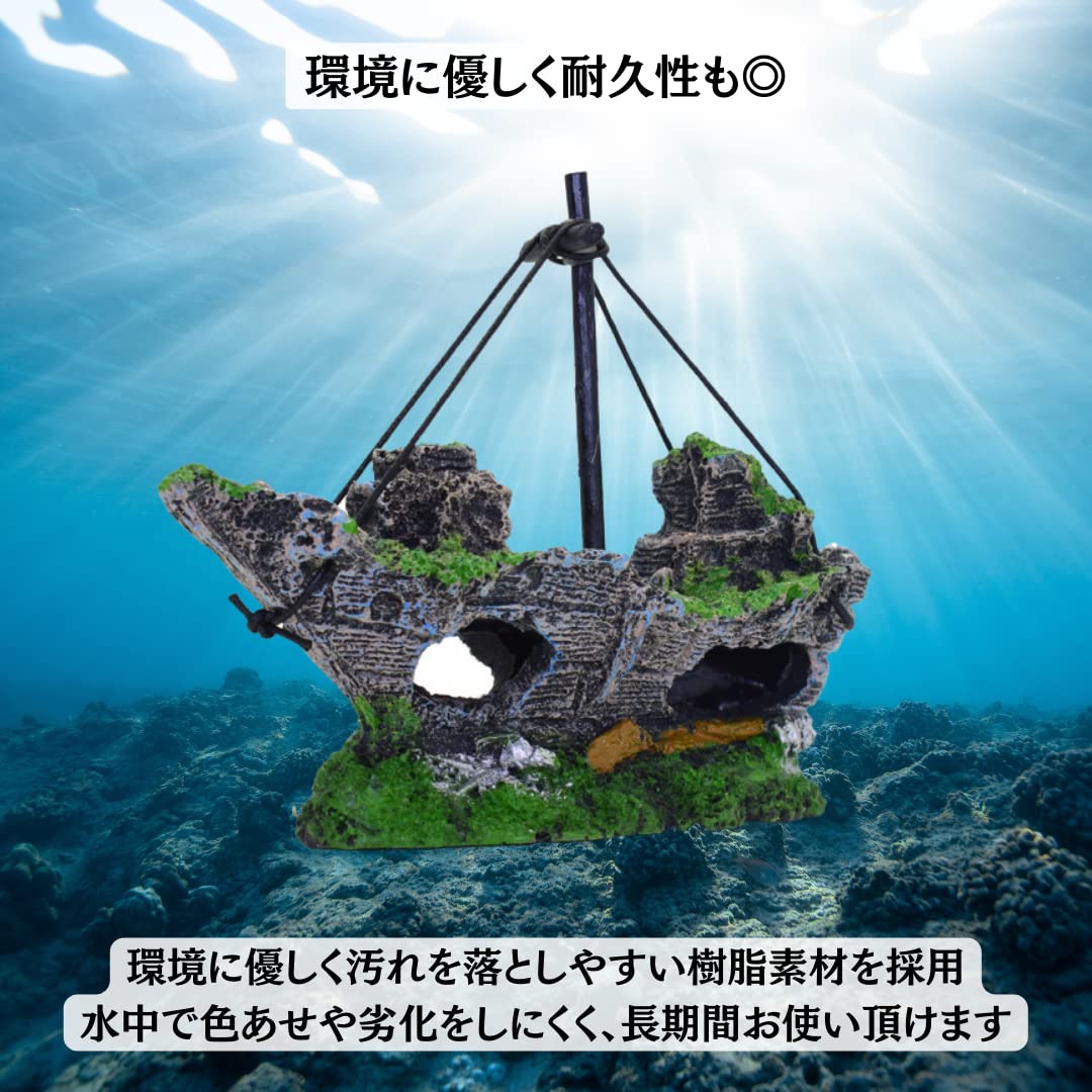 Charmoon アクアリウム オブジェ 船 沈没船 水槽用 オーナメント 樹脂 隠れ家 インテリア 置物