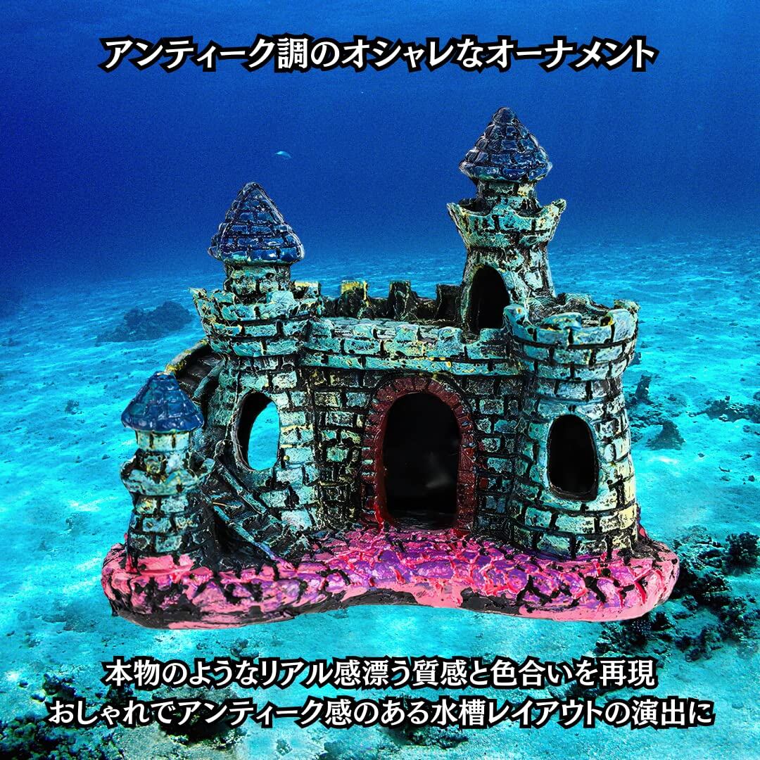 【リアル感漂うおしゃれなオーナメント】中世ヨーロッパのお城をモチーフにした、アンティーク調のアクアリウムオーナメントです。独自の塗装技術により、本物のようなリアルな質感と色合いを再現しております。おしゃれで味のある、素敵な水槽レイアウトの演出に最適です。