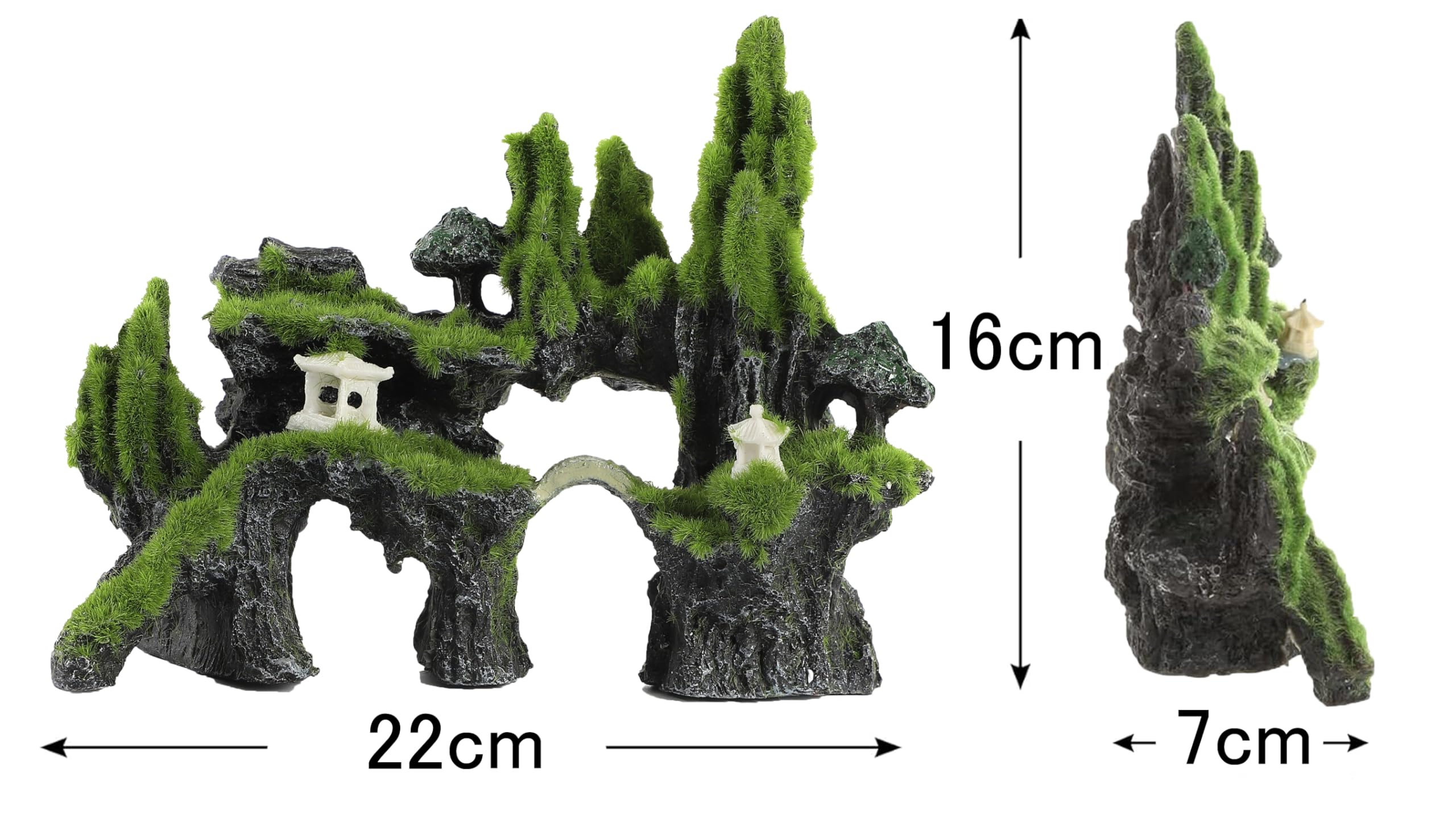 akindou 水槽 アクエリアム オーナメント 22cm オブジェ デコレーション 置物 熱帯魚 隠れ家 山 灯篭 橋 あずまや (グリーン)