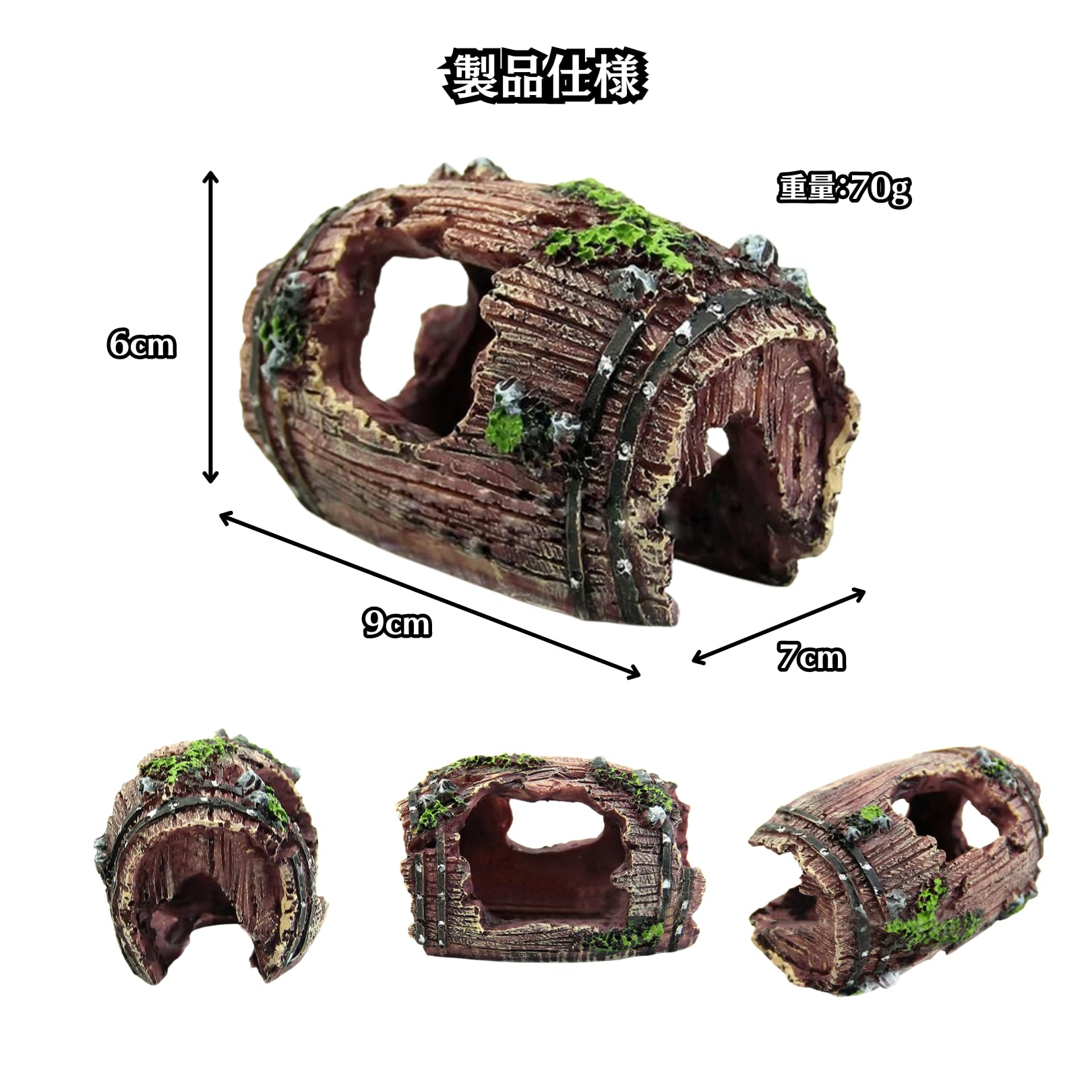 Charmoon アクアリウム 水槽 オブジェ 樽 隠れ家 水槽 インテリア 置物 飾り (ブラウン)