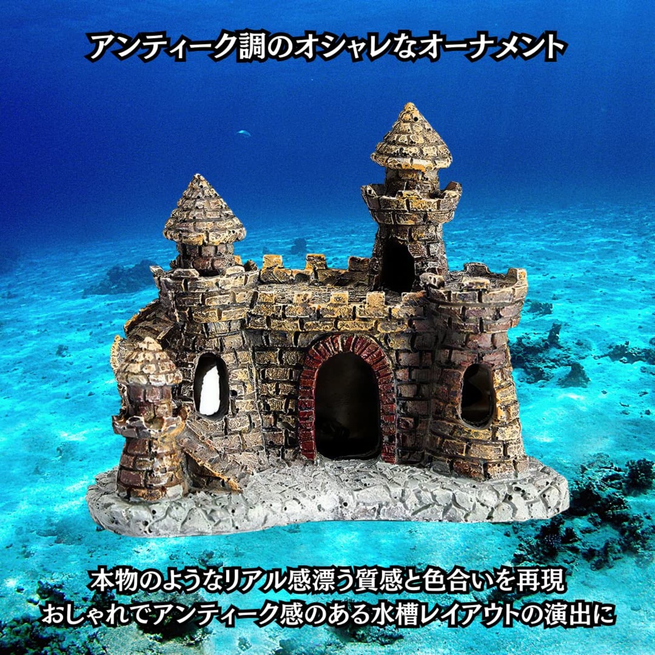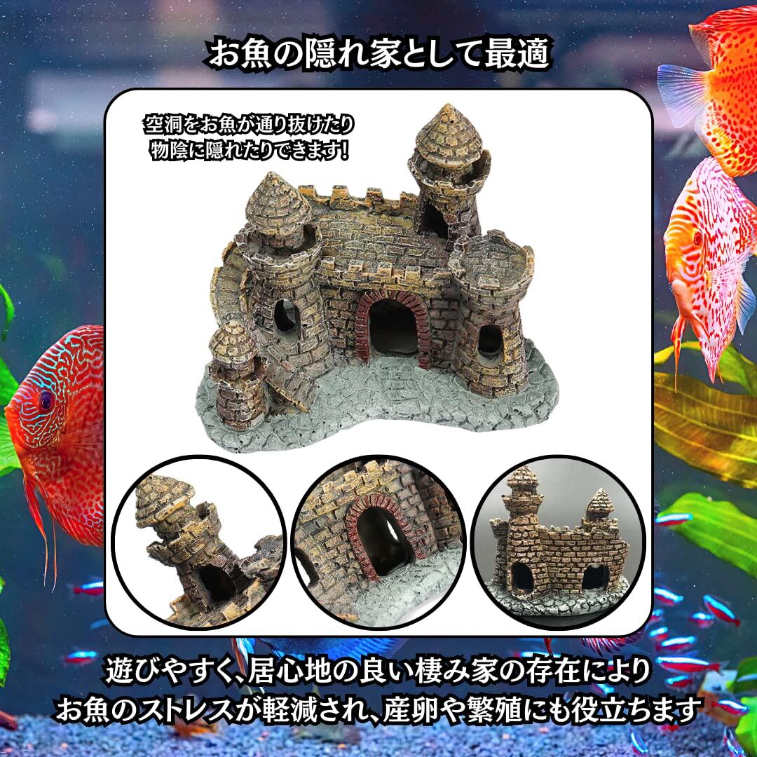 【リアル感漂うおしゃれなオーナメント】中世ヨーロッパのお城をモチーフにした、アンティーク調のアクアリウムオーナメントです。独自の塗装技術により、本物のようなリアルな質感と色合いを再現しております。おしゃれで味のある、素敵な水槽レイアウトの演出に最適です。