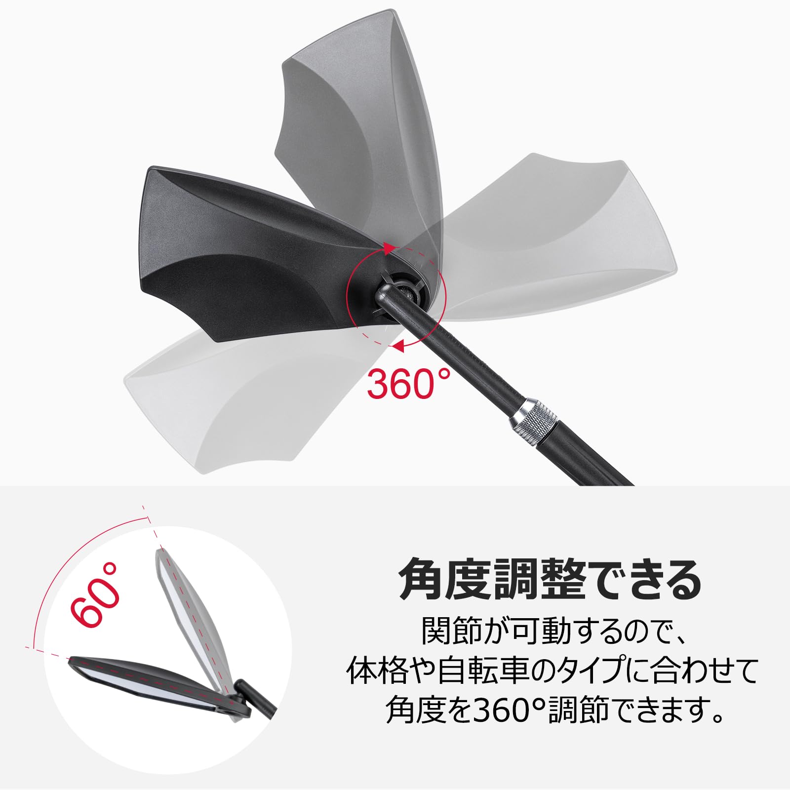 【広い視界で見やすい!】 ワイドな視界と自然な距離感を確保し、サイクリングをサポートする平面鏡仕様です。