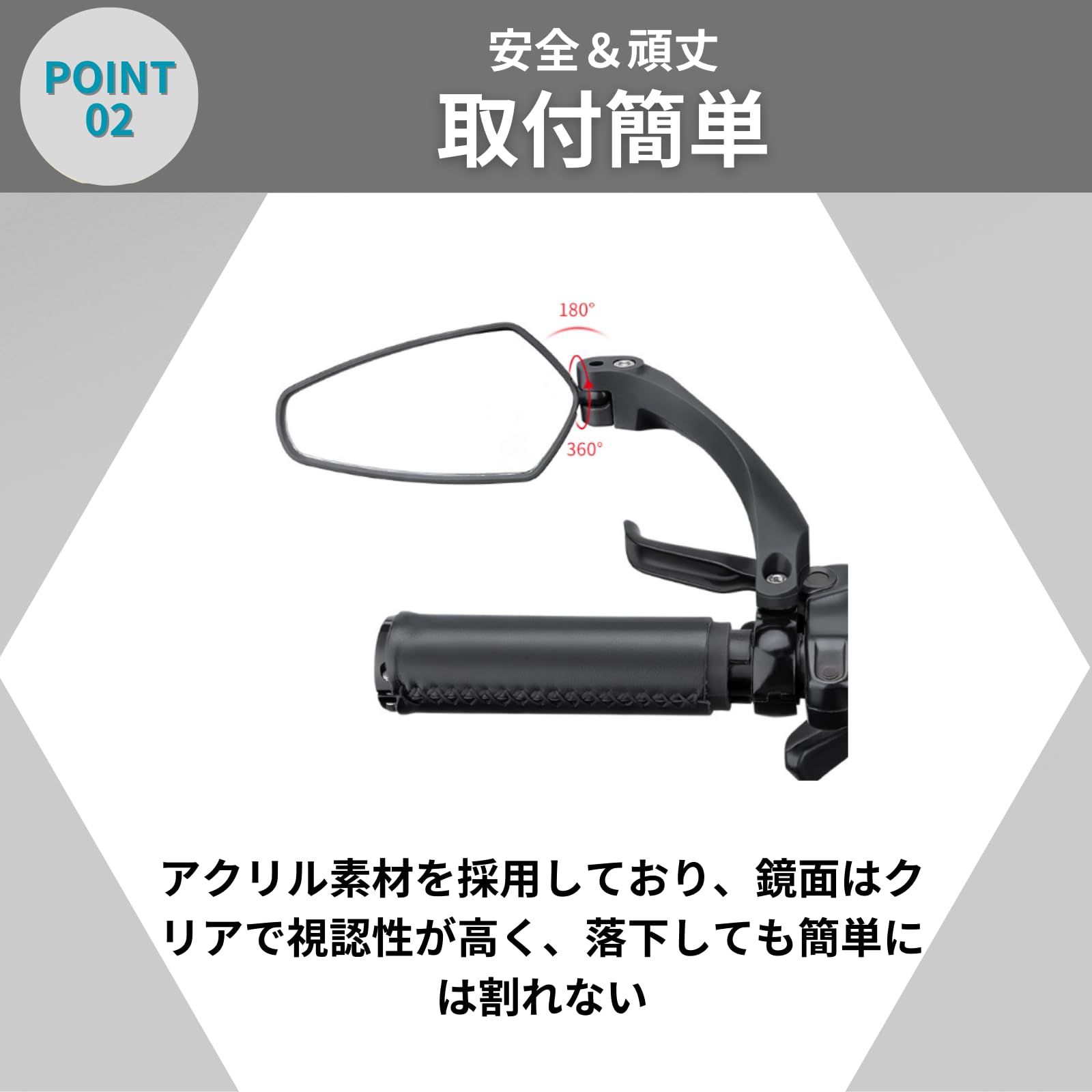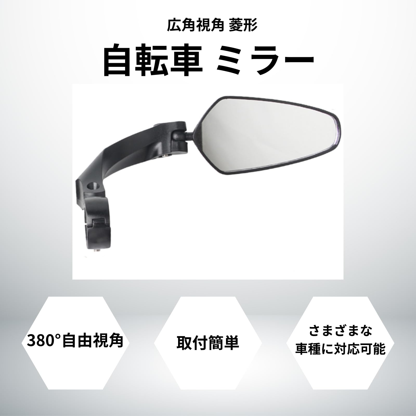 自転車 ミラー バーエンドミラー バックミラー 360度回転 広角視角 菱形/円形 取り付け簡単 (菱形右)
