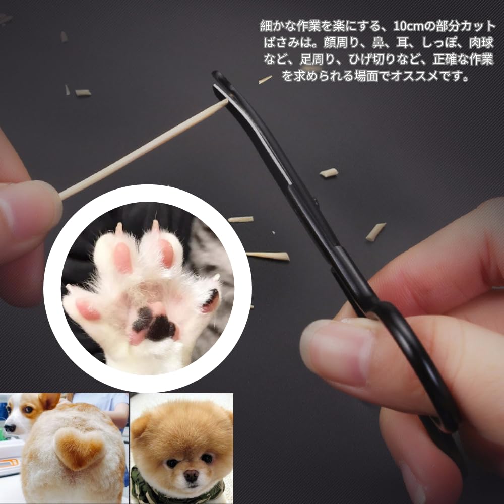 【ミニシザー】細かな作業を楽にする、10cmの部分カットばさみは。顔周り、鼻、耳、しっぽ、肉球など、足周り、ひげ切りなど、正確な作業を求められる場面でオススメです