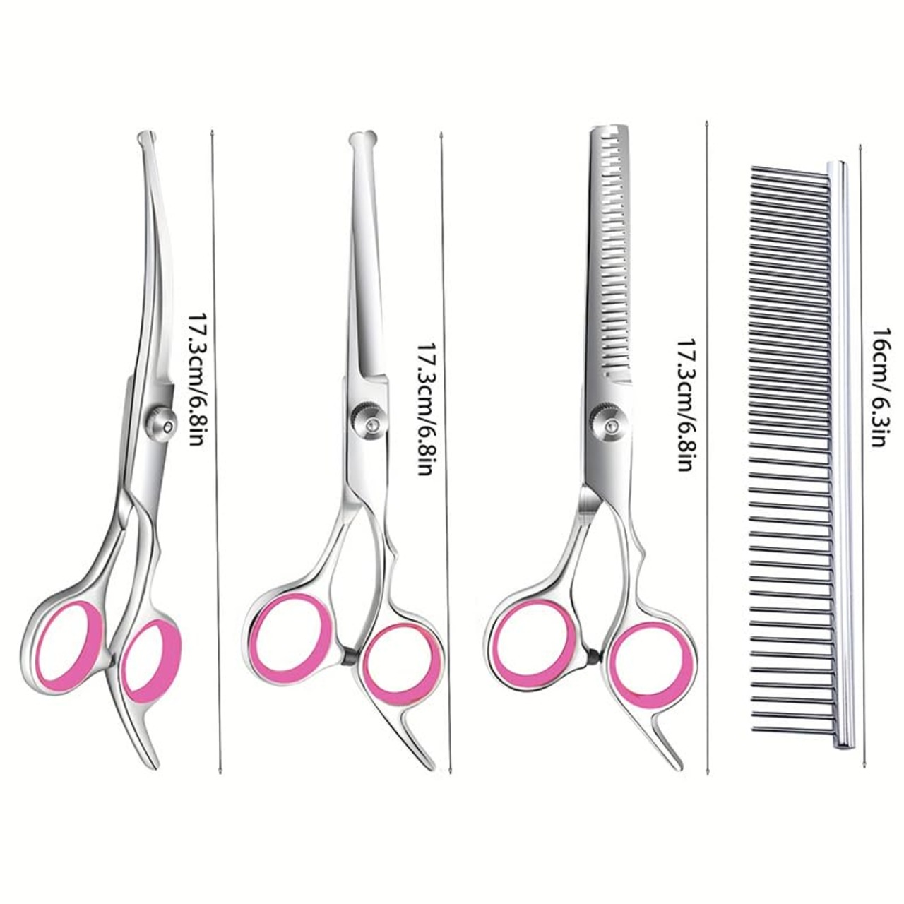 【便利な保管と持ち運び】はさみセットには、使用しないときに工具を保管するための美しい保管バッグが付属しています。完璧なペットトリミングキットは、自宅でペットの髪を簡単にトリミングするのに最適です。