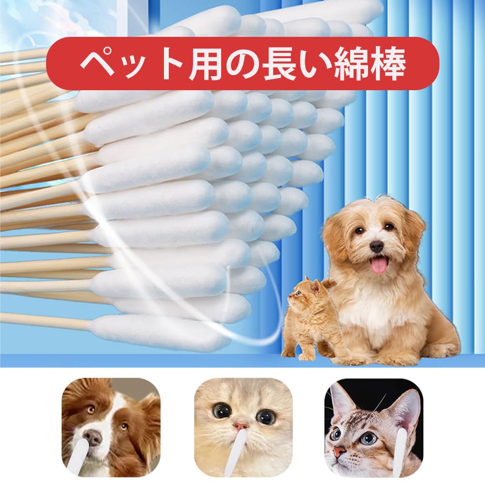 長い綿棒 犬 猫 綿棒 犬 耳掃除 汚れ落とし 肌に優しい 長い柄付き 使い捨てペット綿棒 耳のケア用 ペット用 100本入り