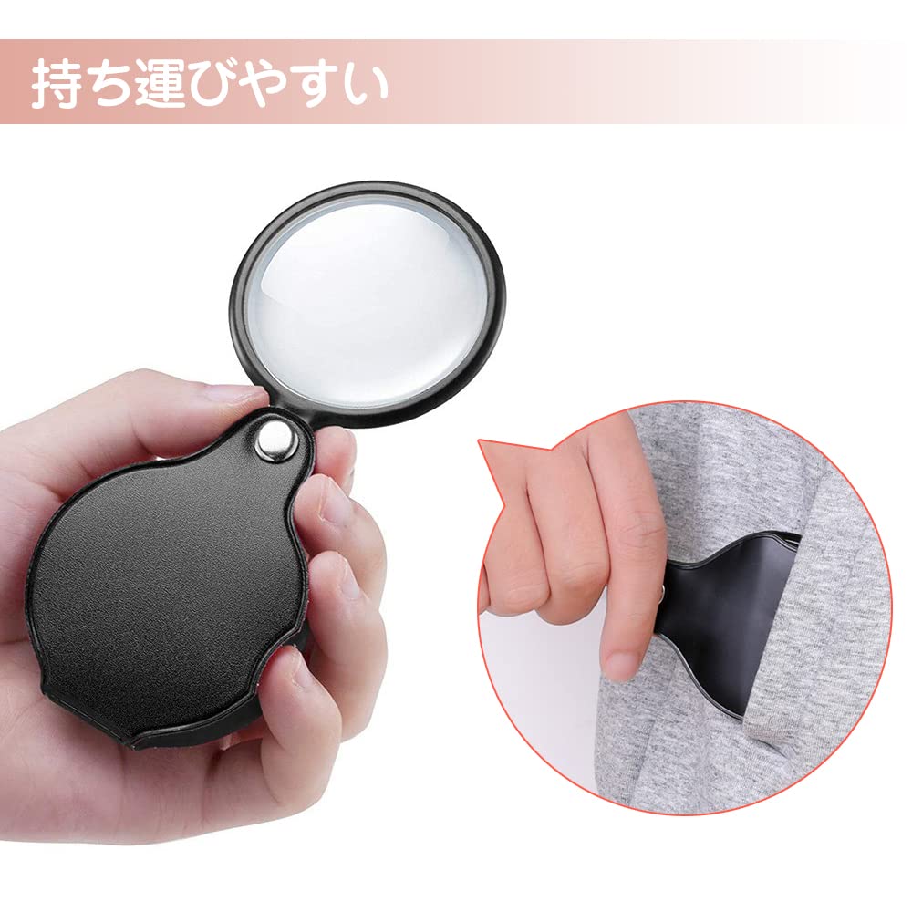 ポケットルーペ 拡大倍率10倍 レンズ径60mm 折りたたみ式 拡大鏡 虫眼鏡 手持ちルーペ 読書ルーペ 読書 コンパクト 携帯便利 小型 革ケースに収納 ギフト