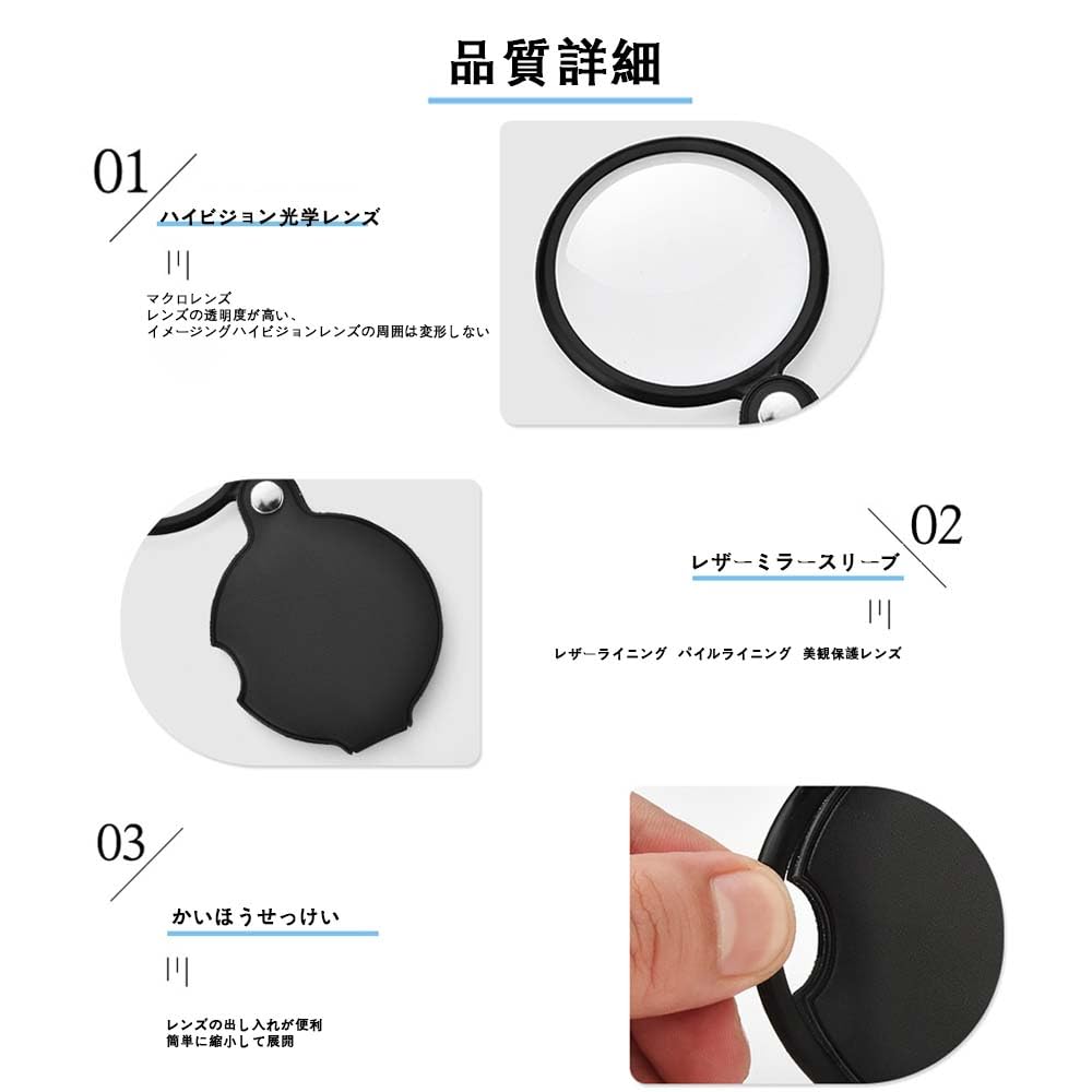 3.【耐久性のある素材】高品質な光学グレードの拡大鏡とPUレザー製のカバーを採用。虫眼鏡ルーペは傷つきにくく、日常使用や持ち運びでもレンズをしっかり保護します。長期間使用にも安心の仕様です
