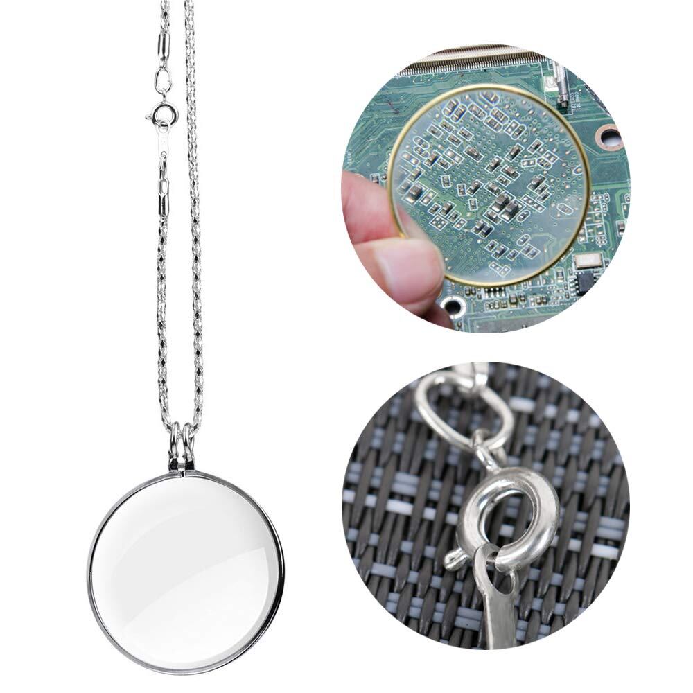 ペンダントルーペ 拡大率5倍 ネックレス ルーペ 拡大鏡 虫眼鏡 老眼鏡 読書用ルーペ 5倍拡大 手持ち 首掛け おしゃれ メンズ レディース 携帯便利 (シルバー)