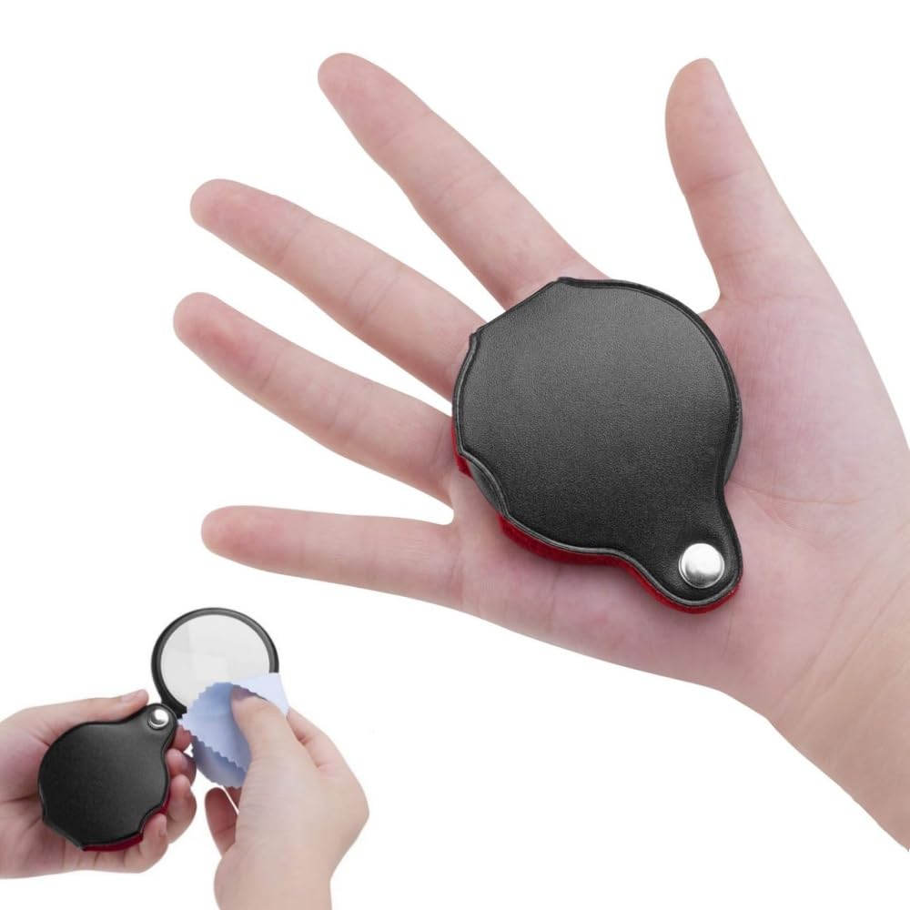 ポケットルーペ 折り畳み式 10倍 虫眼鏡 2個入り 手持ち 小型ルーペ PU革 レンズ径 50mm 携帯便利 読書/昆虫/趣味観察/科学教室/子供の自然観察/高齢者用