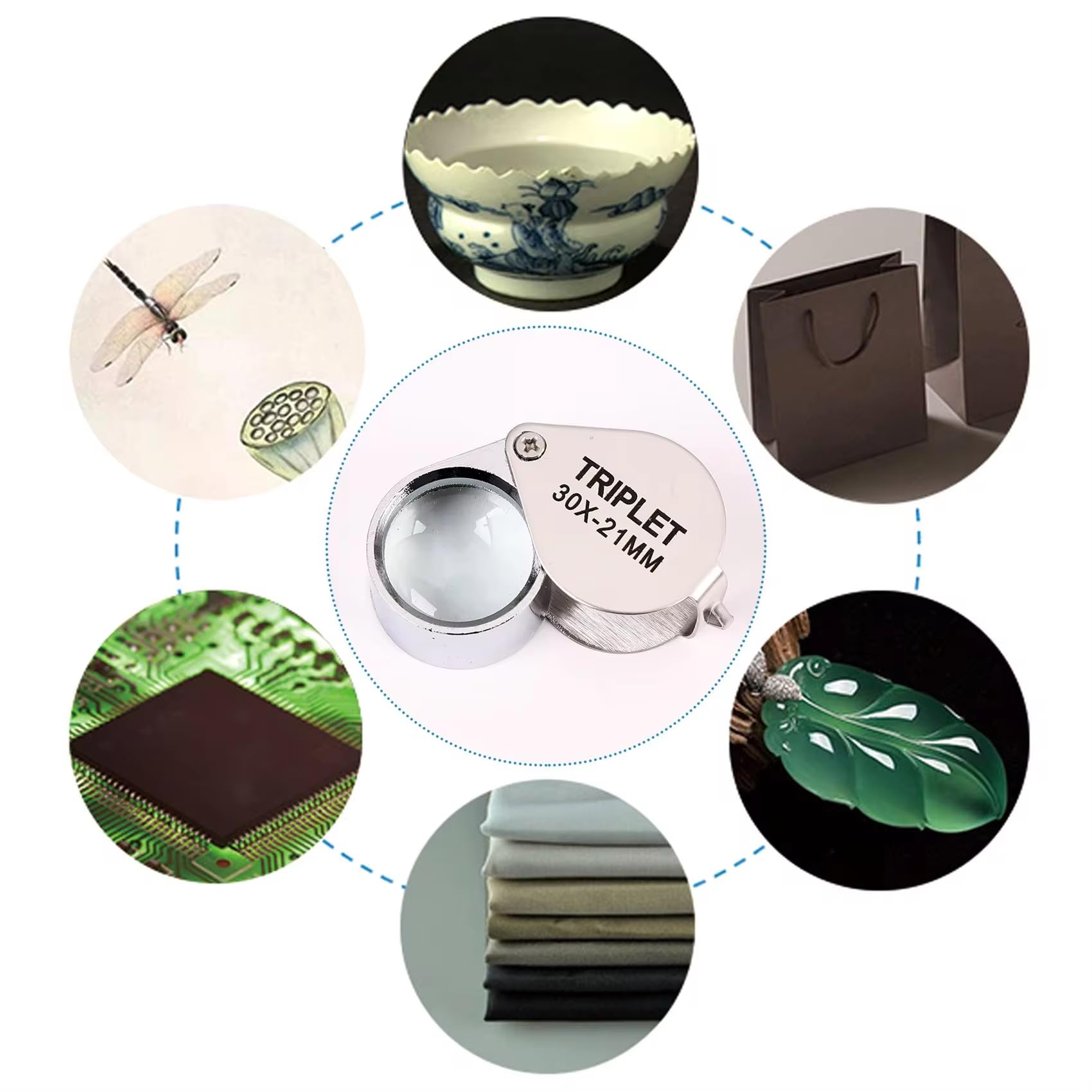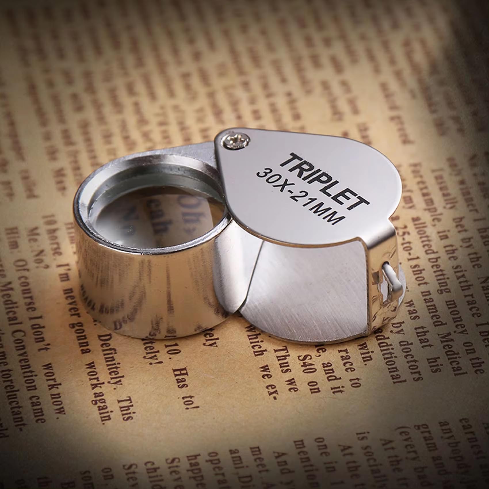 折りたたみ拡大鏡30倍、自然光、シルバー、持ち運び便利、ルーペ携帯用 拡大鏡 ルーペ、虫眼鏡 ルーペ、ルーペ 30倍 ジュエリールーペ ポケットジュエリールーペ ミニルーペ 貴金属識別 携帯電話ルーペ 高倍率ルーペ