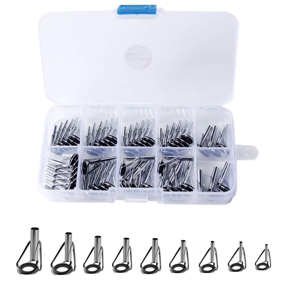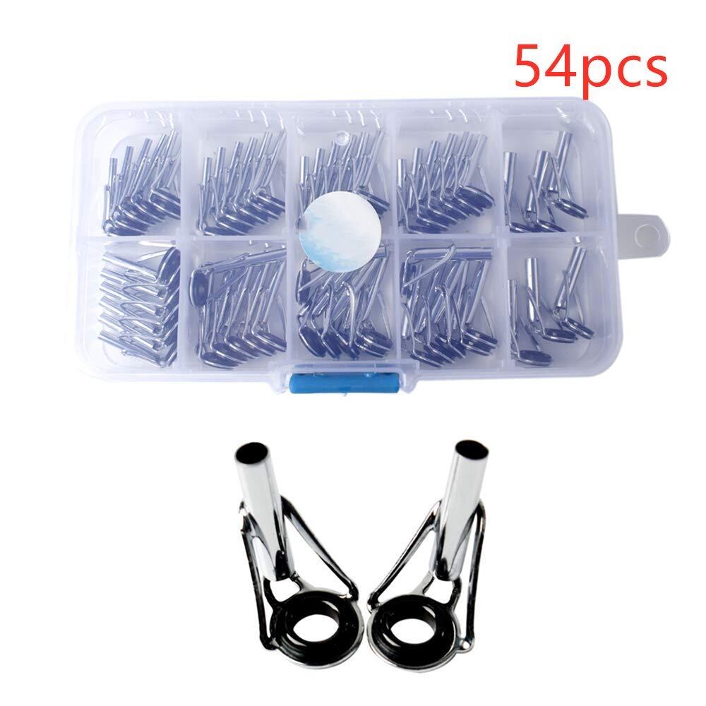 54個入り トップガイド キット 釣り竿ロッドガイド アイリング セラミックリング ステンレス鋼 交換 修理 補修用 穂先 釣りアクセサリー 収納ボックス