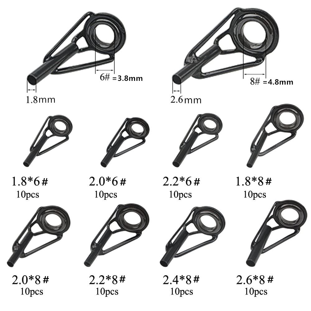 WMYCONGCONG 80個セット トップガイド ロッドガイド 内径1.8mm〜2.6mm 釣り竿穂先 釣り竿ガイド 先端 交換 修理キット 8サイズ ブラック