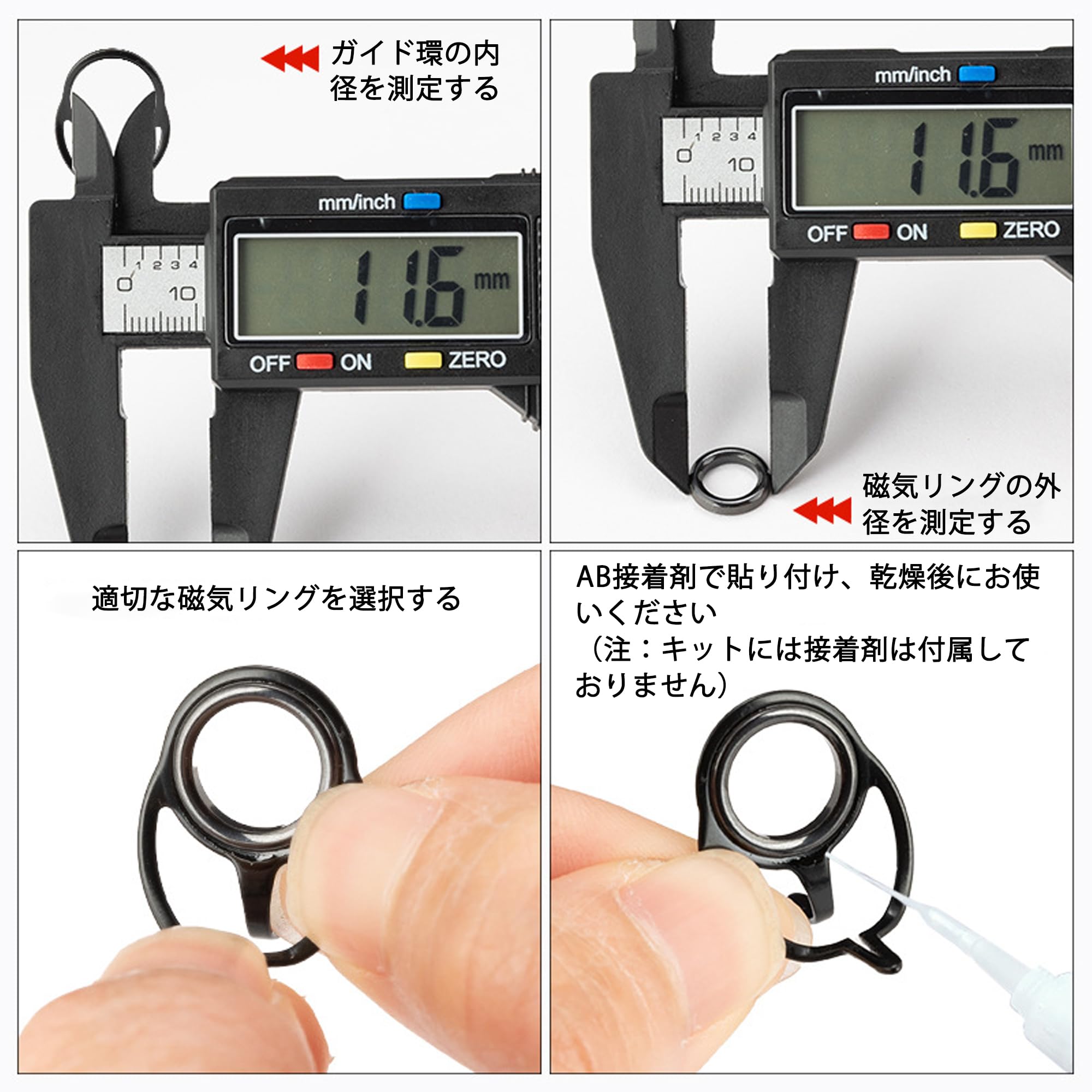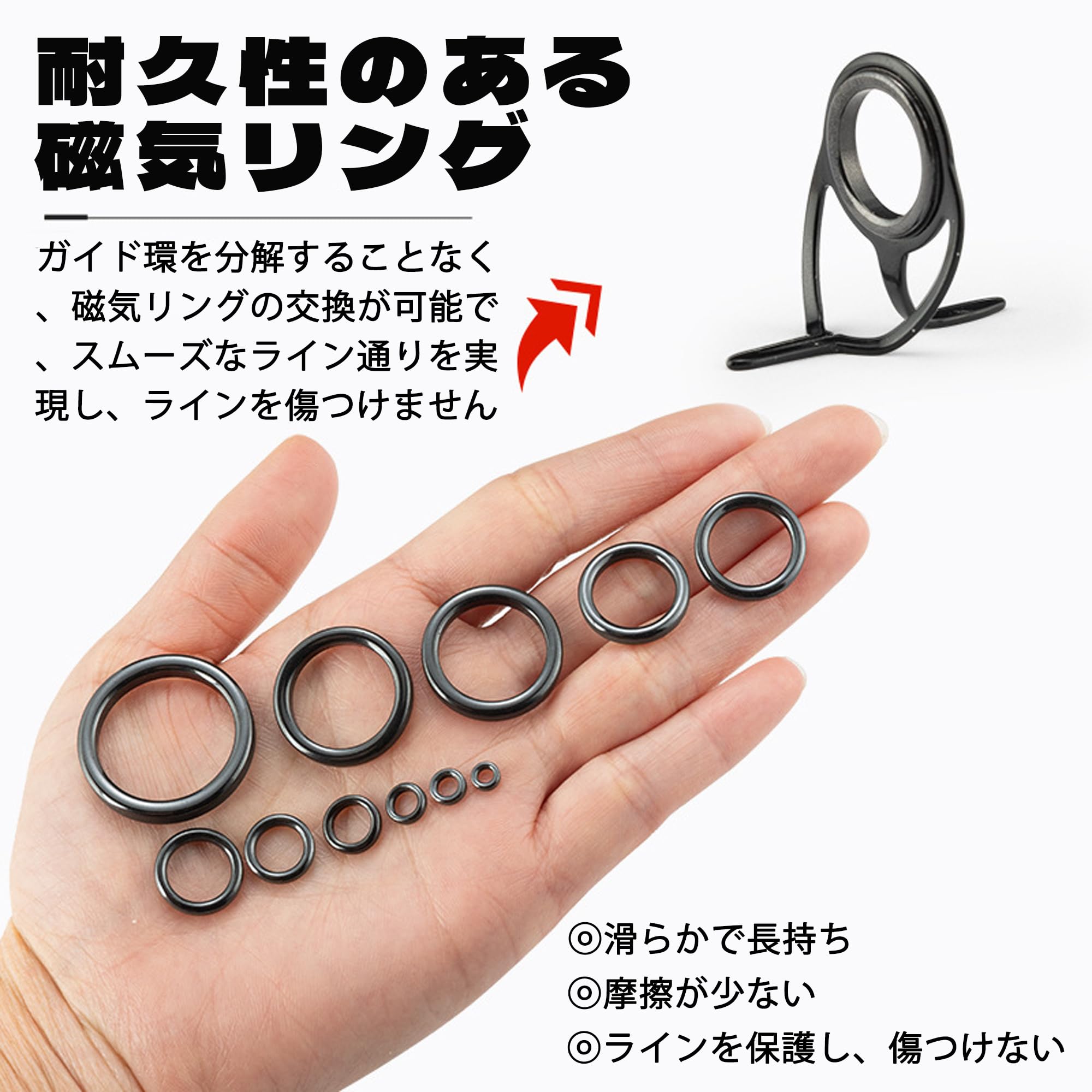 【簡単取り付け設計】釣り竿 修理 キットは既存のガイドを分解する必要なく、直接貼り付けて交換可能。操作が簡単で時間と手間を省け、釣り愛好家のDIYロッド修理・改造に最適です。